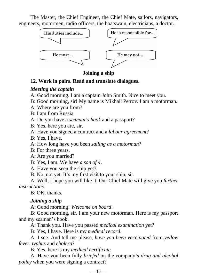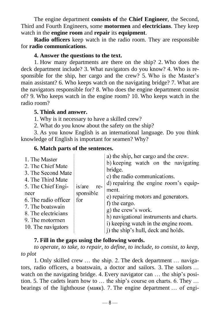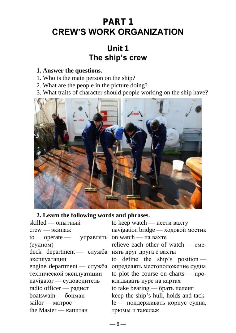 Пособие содержит лексический материал и тексты, направленные на развитие коммуникативных умений в области профессионального общения на английском языке. Также имеется минимально необходимый словарь профессиональных терминов, географических названий и стандартных фраз ИМО (International Maritime Organization). Изложение материала сопровождается многочисленными примерами и иллюстрациями. Соответствует современным требованиям Федерального государственного образовательного стандарта среднего профессионального образования и профессиональным квалификационным требованиям. Предназначено для студентов, обучающихся по программе среднего профессионального образования по специальности «Организация перевозок и управление на транспорте (по видам)» или по программам дополнительного образования.