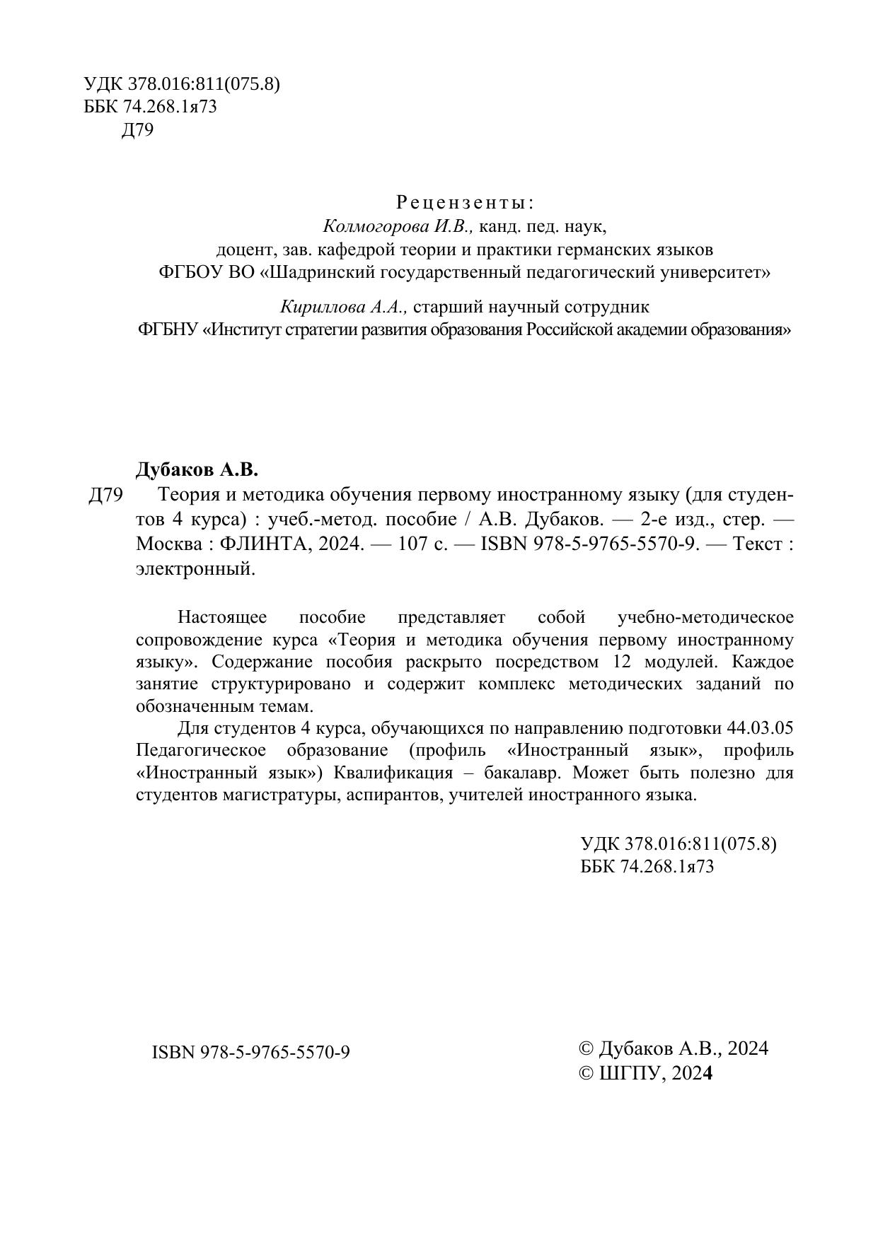 Для студентов 4 курса, обучающихся по направлению подготовки 44.03.05 Педагогическое образование (профиль «Иностранный язык», профиль «Иностранный язык») Квалификация – бакалавр. Может быть полезно для студентов магистратуры, аспирантов, учителей иностранного языка.