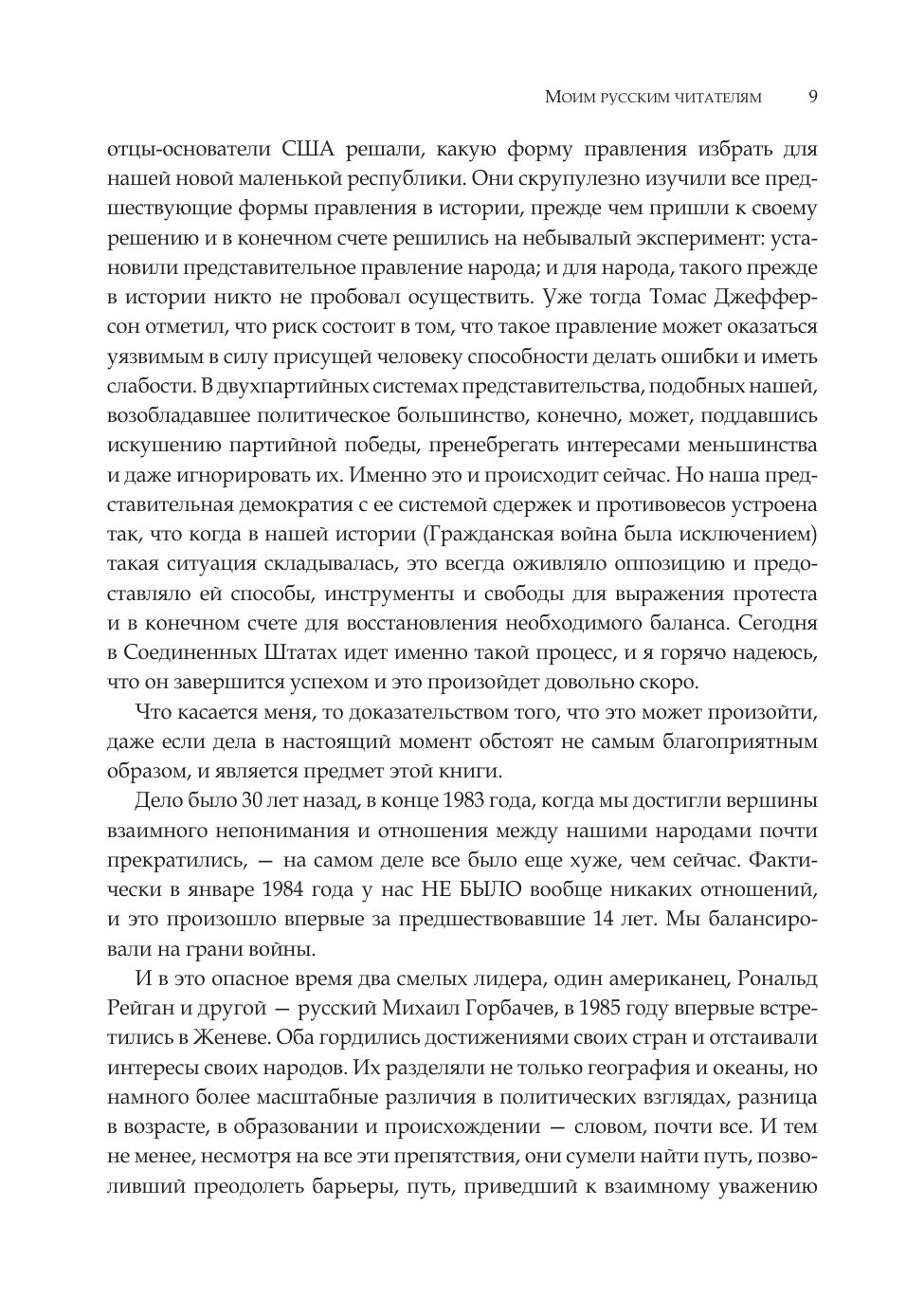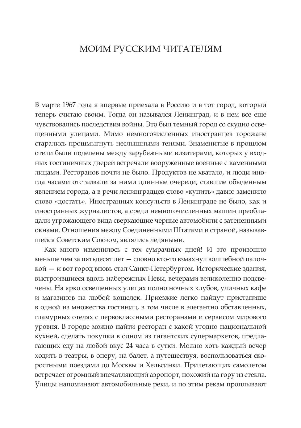 Воспоминания американской писательницы и историка содержат подробный рассказ о вкладе автора в улучшение отношений между СССР и США в середине 80-х годов XX века и в прекращение холодной войны. Будучи признанным знатоком русской культуры, автором нескольких книг, посвященных России, в том числе «Земля Жар-птицы. Краса былой России», «Павловск: жизнь русского дворца», С. Масси приложила неоценимые усилия для налаживания взаимопонимания между Белым домом и Кремлем, между президентом США Р. Рейганом, доверенным советником которого она стала, и Генеральным секретарем ЦК КПСС М.С. Горбачевым. Книга содержит множество неизвестных подробностей дипломатических и межгосударственных отношений двух стран, а также великолепно показывает, как можно и необходимо преодолевать взаимное недоверие и враждебность, косность бюрократического аппарата, когда у лидеров стран есть стремление к миру и сотрудничеству.