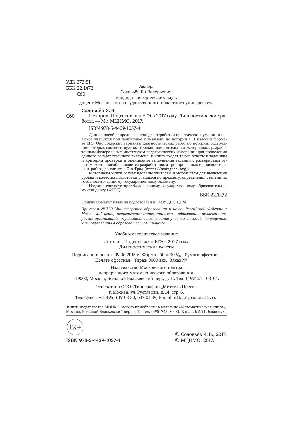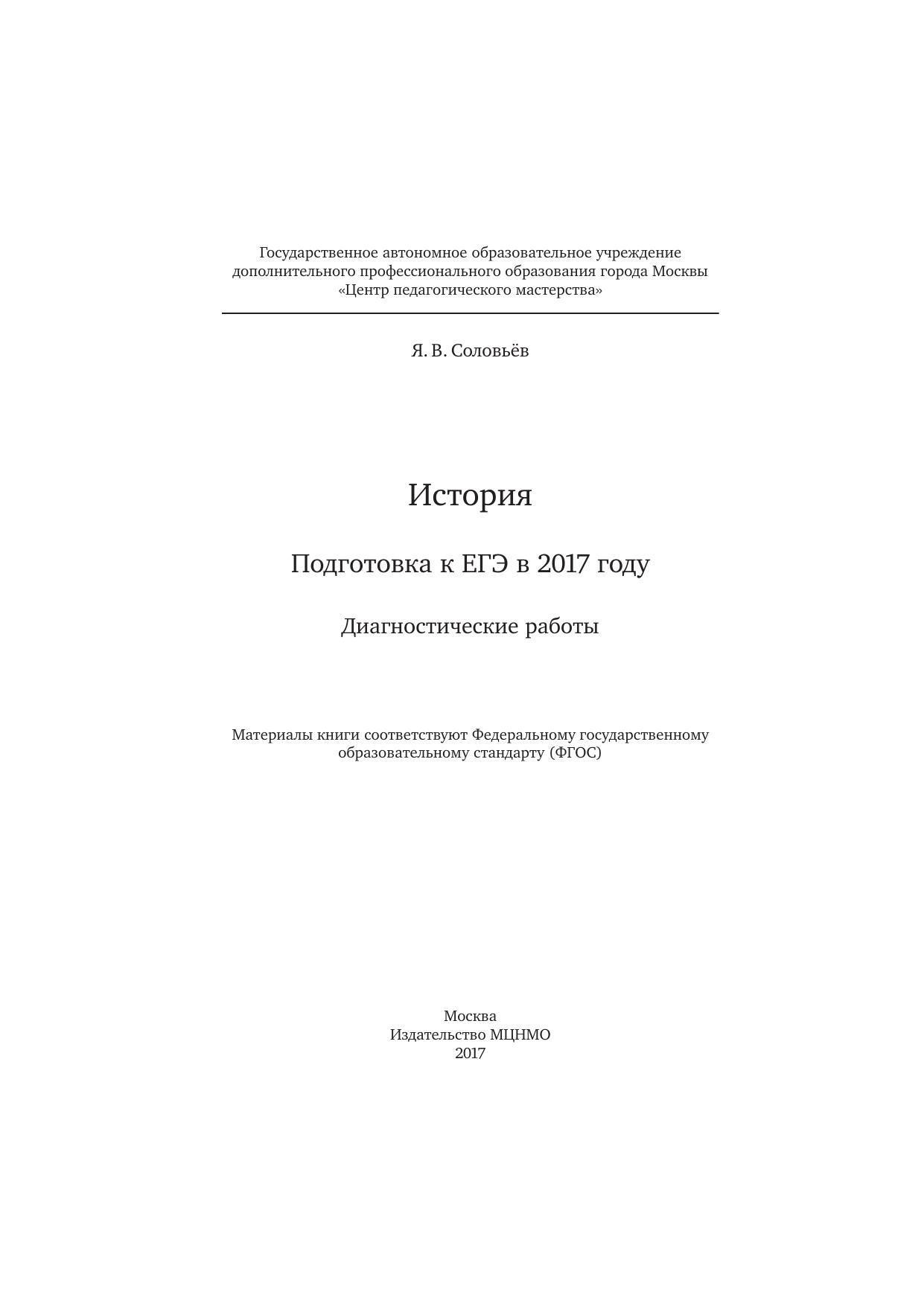История. Подготовка к ЕГЭ в 2017 году. Диагностические работы