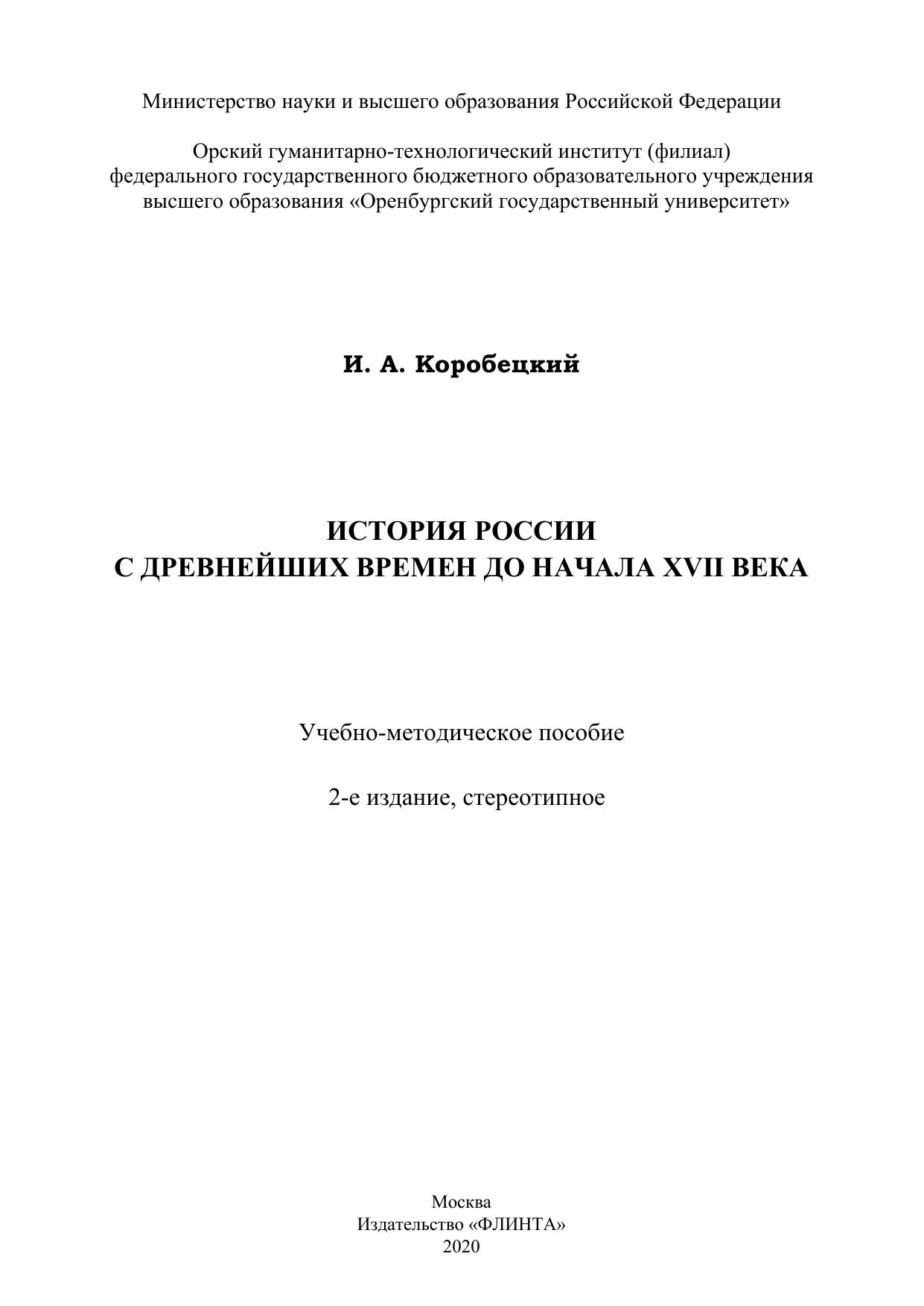 История России с древнейших времен до начала XVII века