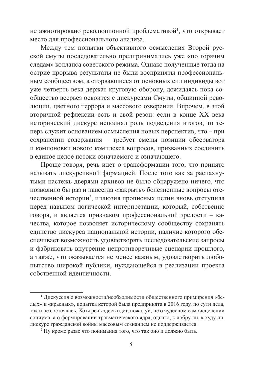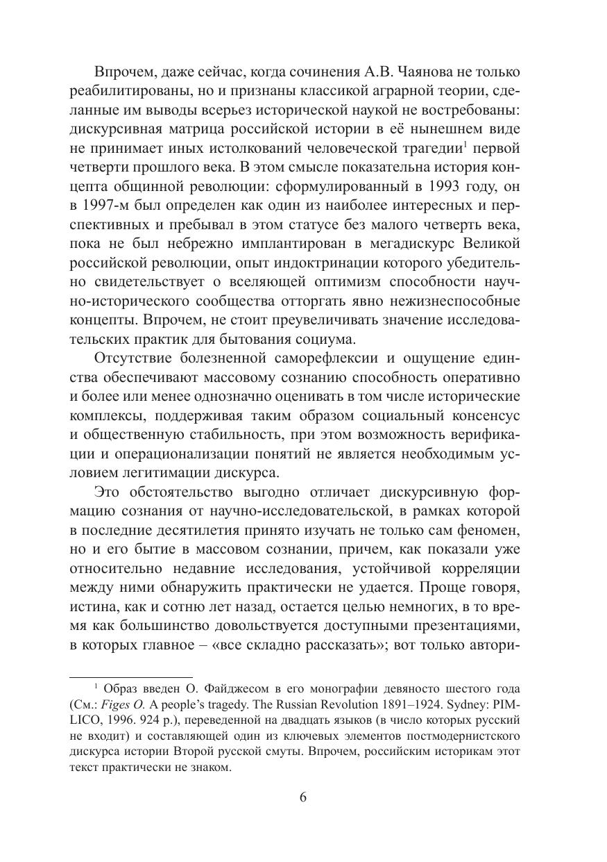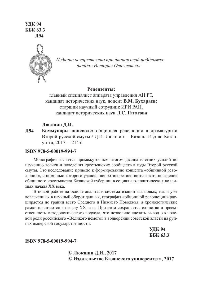 Монография является промежуточным итогом двадцатилетних усилий по изучению логики и поведения крестьянских сообществ в годы Второй русской смуты. Это исследование привело к формированию концепта «общинной революции», с помощью которого удалось непротиворечиво истолковать поведение общинного крестьянства Казанской губернии в социально-политических коллизиях начала ХХ века.