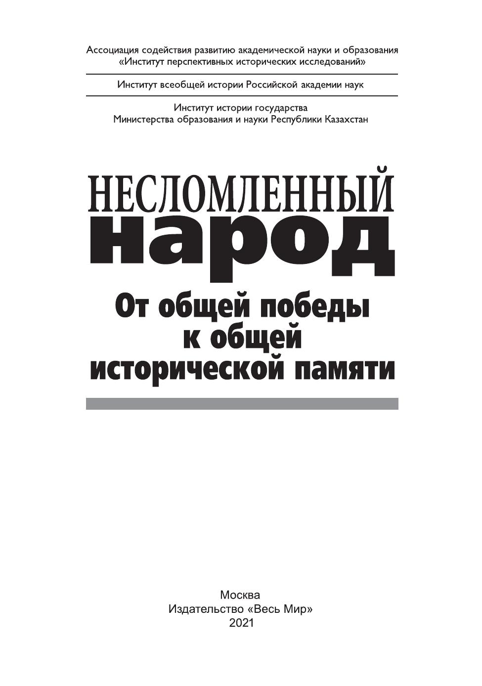Несломленный народ. Oт общей победы к общей исторической памяти