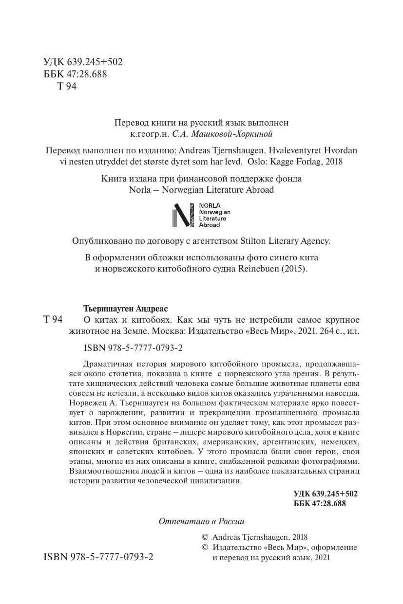Драматичная история мирового китобойного промысла, продолжавшаяся около столетия, показана в книге с норвежского угла зрения. В результате хищнических действий человека самые большие животные планеты едва совсем не исчезли, а несколько видов китов оказались утраченными навсегда. Норвежец А. Тьерншауген на большом фактическом материале ярко повествует о зарождении, развитии и прекращении промышленного промысла китов. При этом основное внимание он уделяет тому, как этот промысел развивался в Норвегии, стране – лидере мирового китобойного дела, хотя в книге описаны и действия британских, американских, аргентинских, немецких, японских и советских китобоев. У этого промысла были свои герои, свои этапы, многие из них описаны в книге, снабженной редкими фотографиями. Взаимоотношения людей и китов – одна из наиболее показательных страниц истории развития человеческой цивилизации.