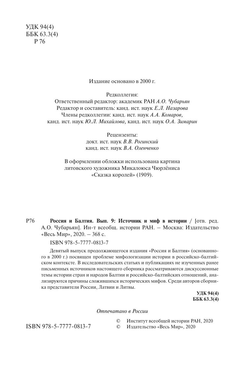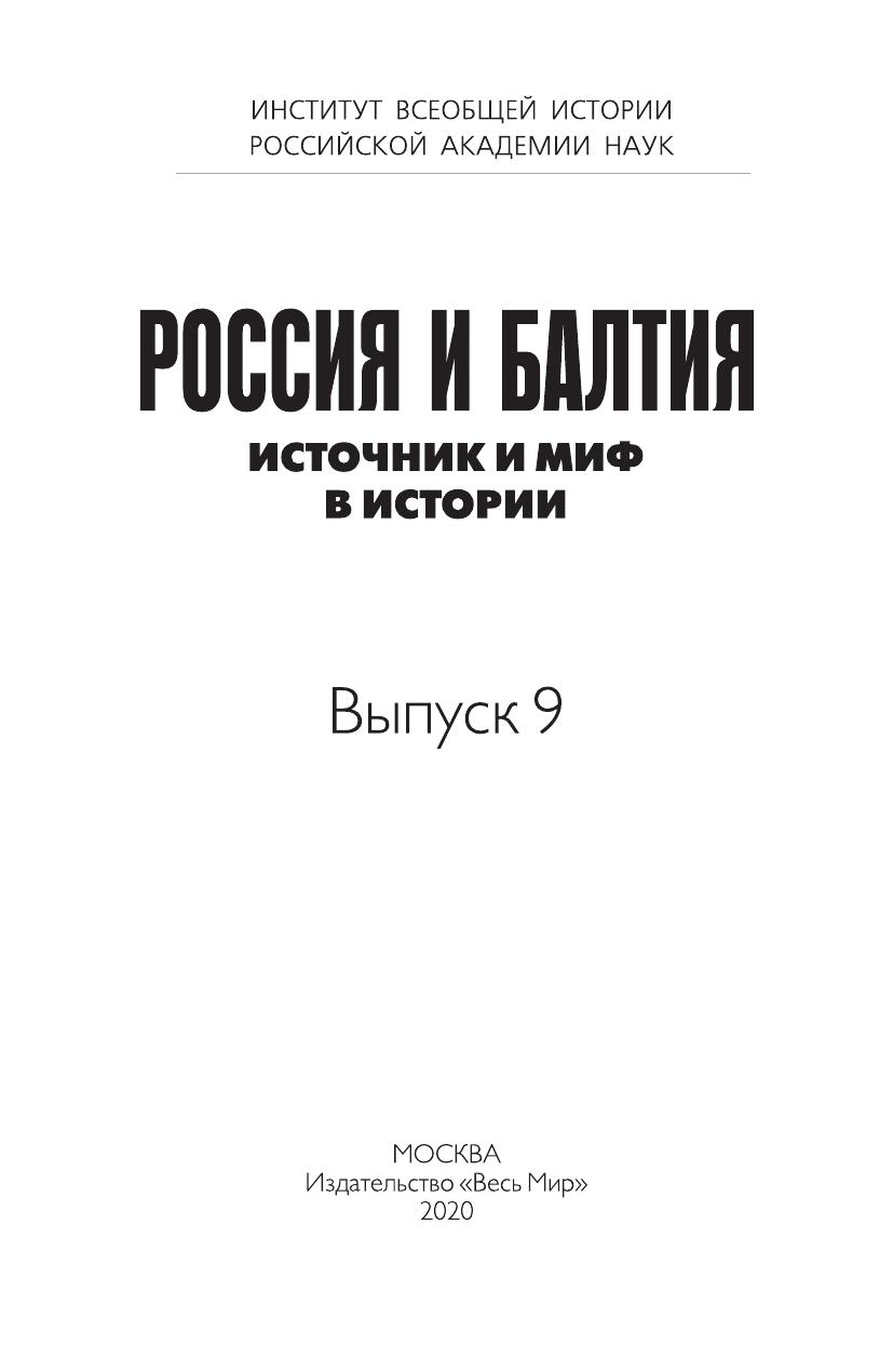 Россия и Балтия. Выпуск 9: Источник и миф в истории