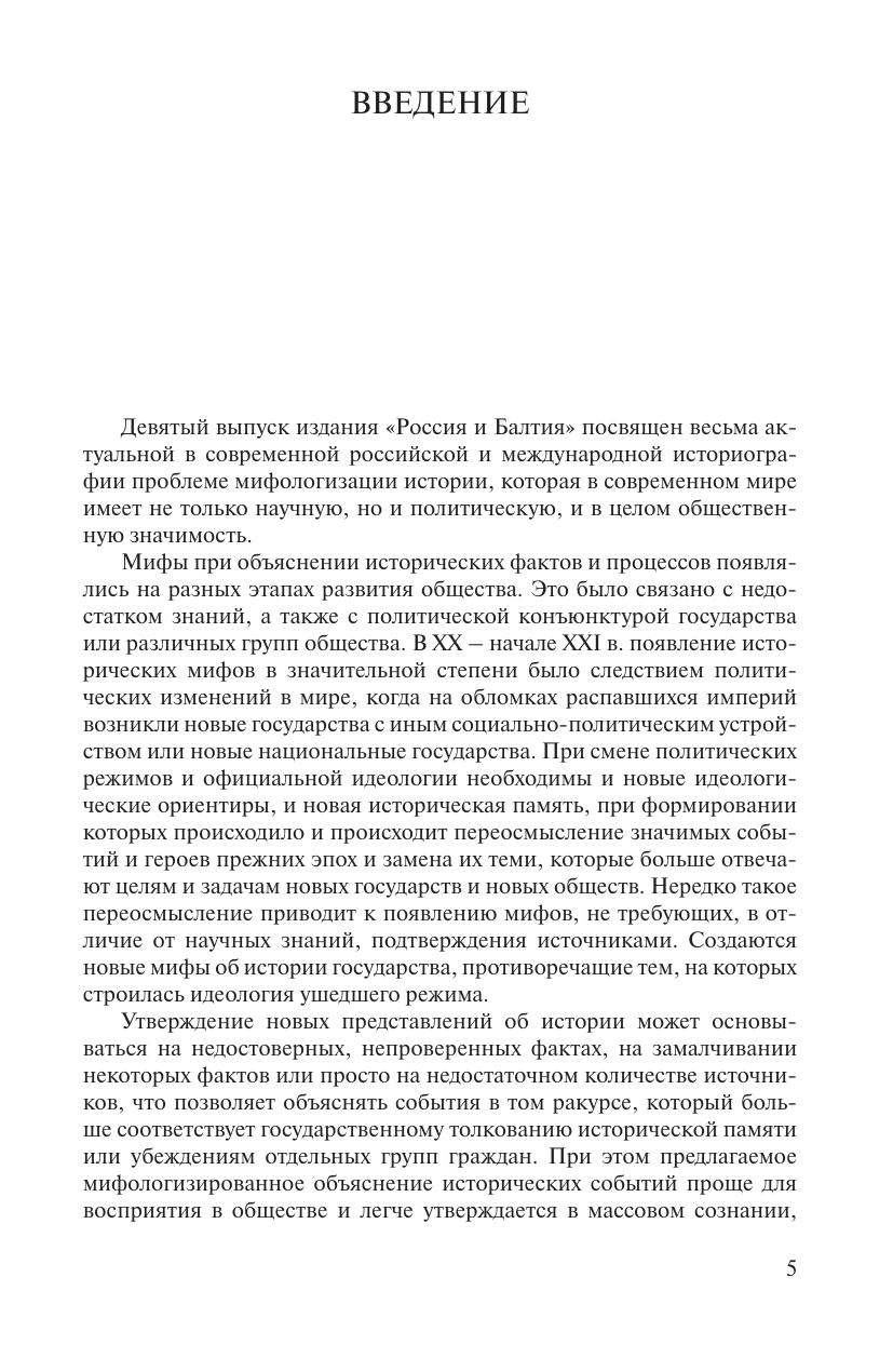 Девятый выпуск продолжающегося издания «Россия и Балтия» (основанного в 2000 г.) посвящен проблеме мифологизации истории в российско-балтийском контексте. В исследовательских статьях и публикациях не изученных ранее письменных источников настоящего сборника рассматриваются дискуссионные темы истории стран и народов Балтии и российско-балтийских отношений, анализируются причины сложившихся исторических мифов. Среди авторов сборника представители России, Латвии и Литвы.