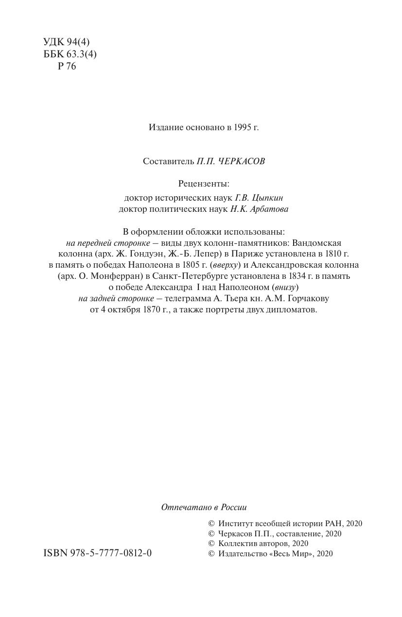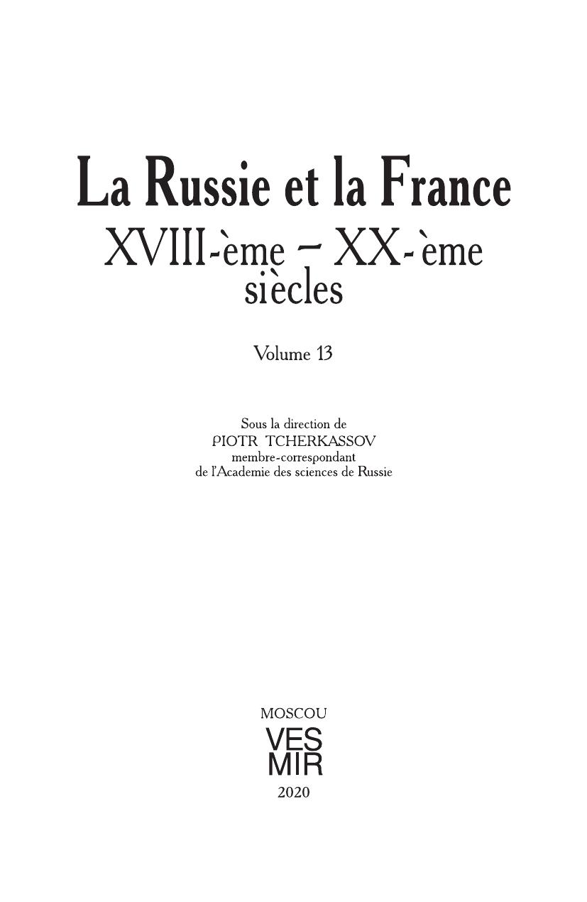 В очередном выпуске представлены статьи и документальные публикации по истории российско-французских отношений за последние три столетия. Исследователи, преподаватели, аспиранты и студенты – все, кто интересуются историей взаимоотношений России и Франции, найдут в нем много нового и полезного. Французская россика эпохи дворцовых переворотов в России (1725–1762), воспоминания знаменитого «дюка Ришелье» о его участии в русско-турецкой войне 1787–1791 гг., образ николаевской России в представлениях французских путешественников, российская «одиссея» Франсуа де Шавийи – авантюриста, банкира и дипломата, русские солдаты в Алжире на исходе и после окончания Первой мировой войны, Михаил Горбачев и Франсуа Миттеран, фактор НАТО в российско-французских отношениях 1990–2010-х гг. – с этими и др. материалами, включая архивные находки, читатель ознакомится на страницах данного выпуска. Для специалистов и всех, кто интересуется отечественной и всеобщей историей.