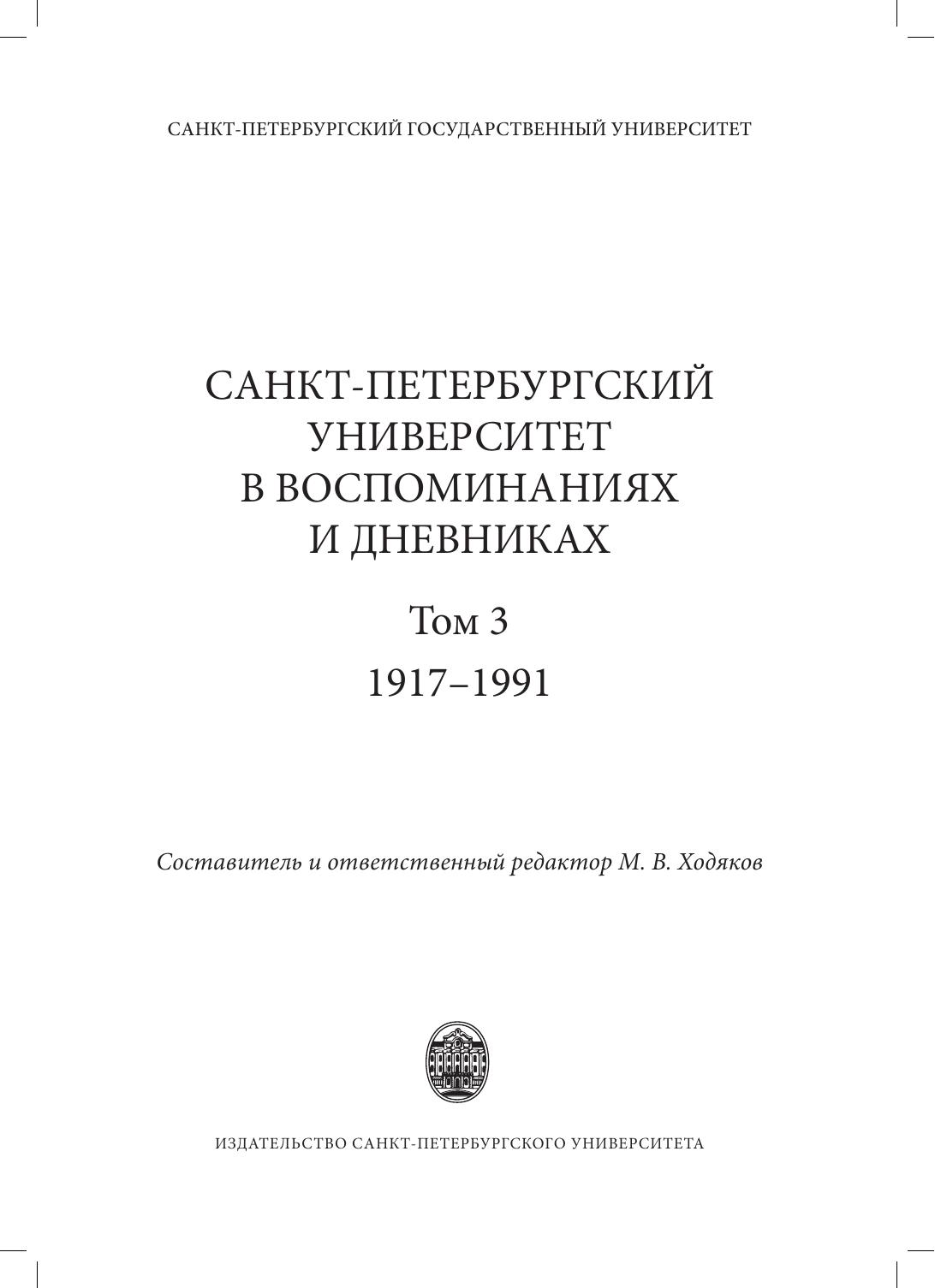 Санкт-Петербургский университет в воспоминаниях и дневниках: в 3-х томах.Том 3. 1917-1991