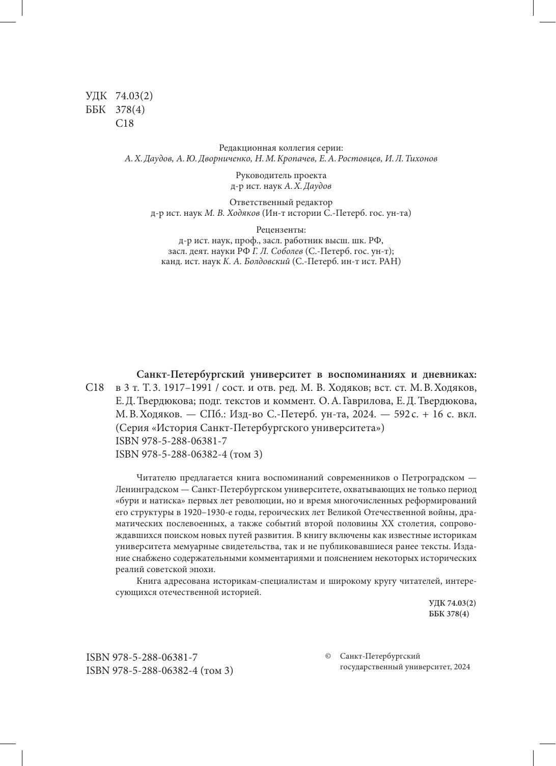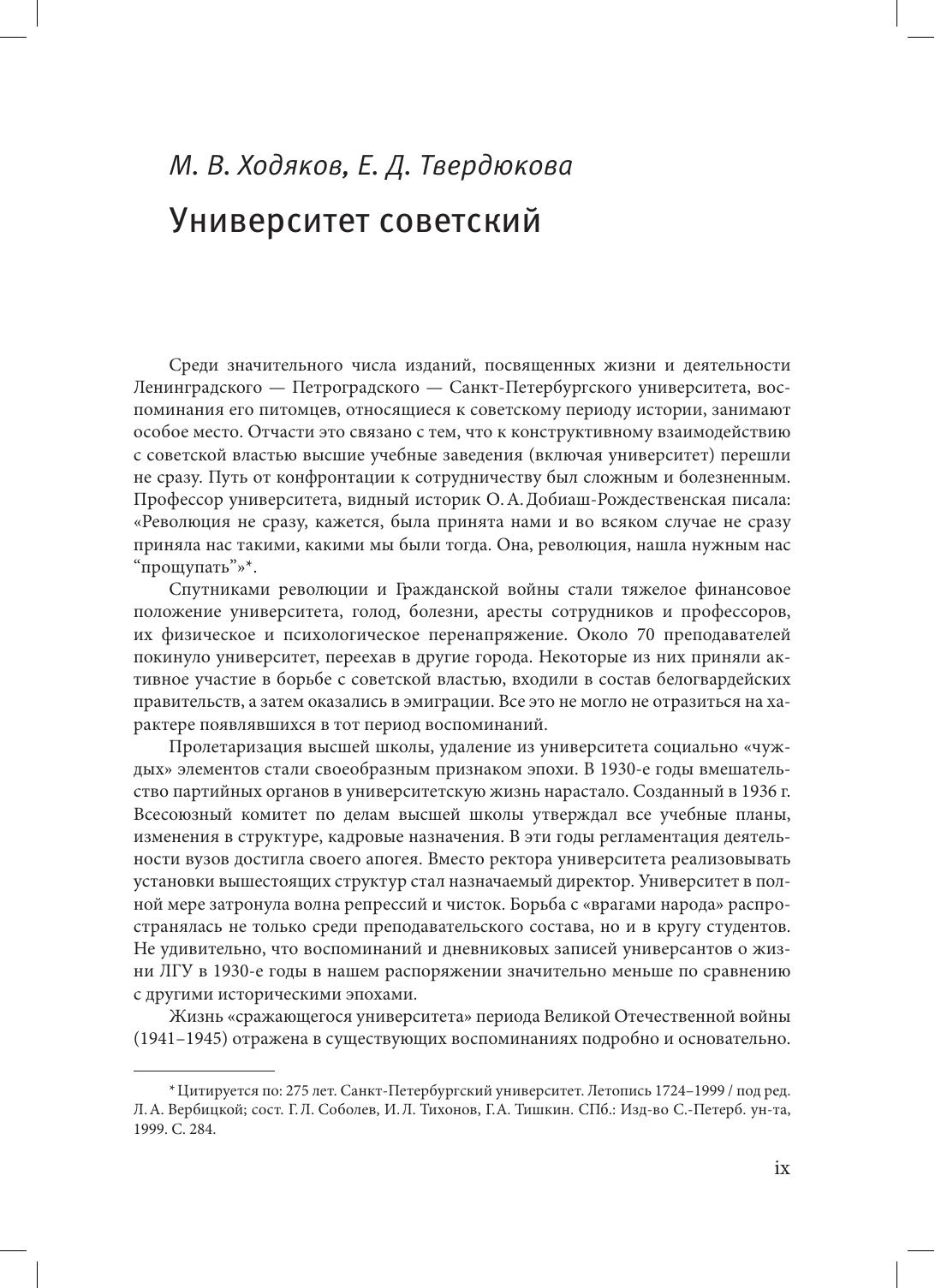 Читателю предлагается книга воспоминаний современников о Петроградском - Ленинградском - Санкт-петербургском университете, охватывающих не только период "бури и натиска" первых лет революции, но и время многочисленных реформирований его структуры в 1920 - 1930-е годы, героических лет Великой Отечественной войны, драматических послевоенных, а также событий второй половины ХХ столетия, сопровождавшихся поиском новых путей развития. В книгу включены как известные историкам университета мемуарные свидетельства, так и не публиковавшиеся ранее тексты. Издание снабжено содержательными комментариями и пояснением некоторых исторических реалий советской эпохи. Книга адресована историкам-специалистам и широкому кругу читателей, интересующихся отечественной историей.