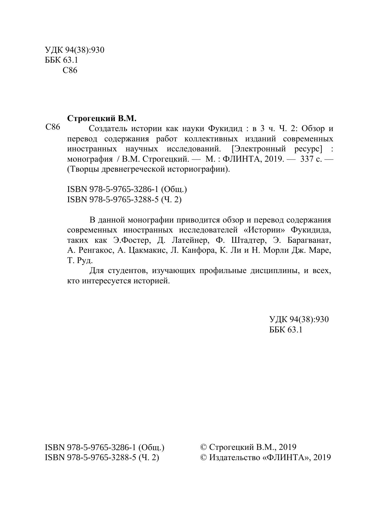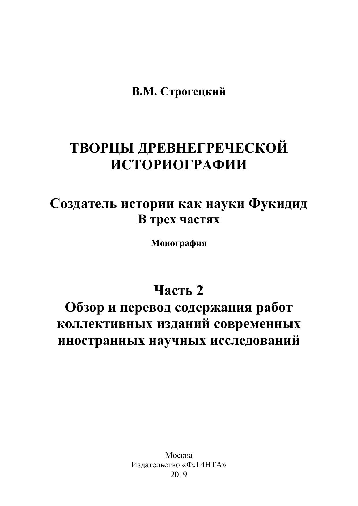 Творцы древнегреческой историографии. Создатель истории как науки Фукидид. Ч.2. Обзор и перевод содержания работ коллективных изданий современных иностранных научных исследований