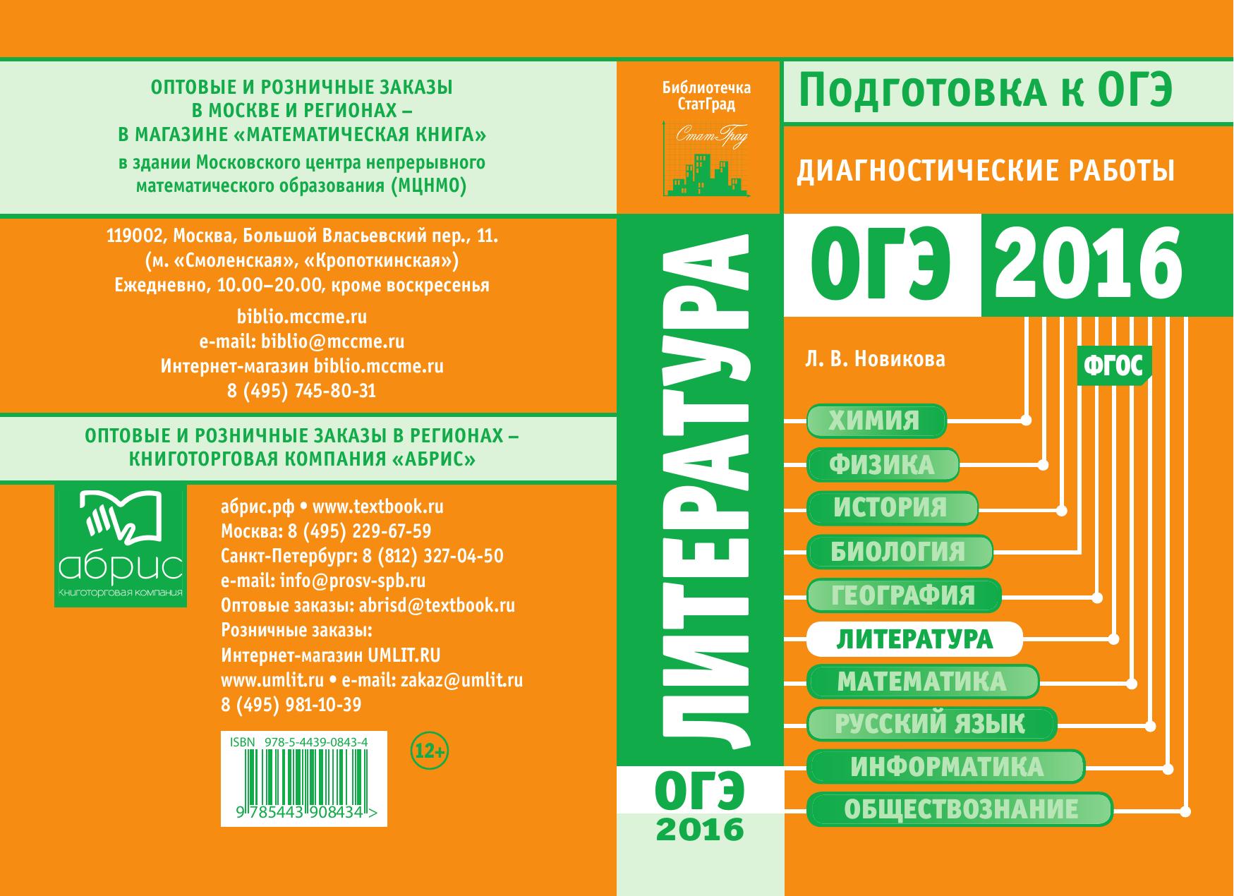Литература. Подготовка к ОГЭ в 2016 году. Диагностические работы