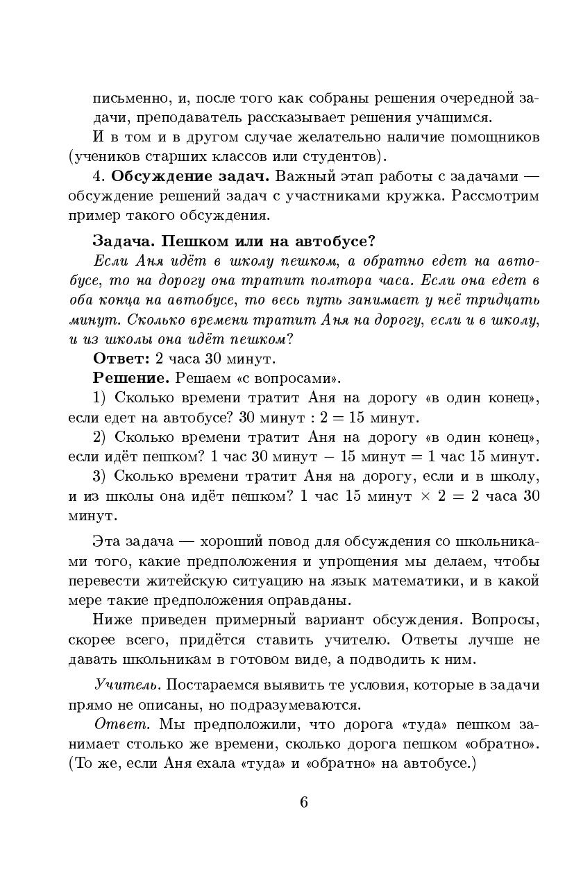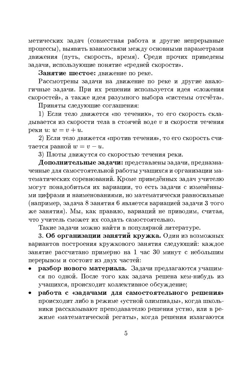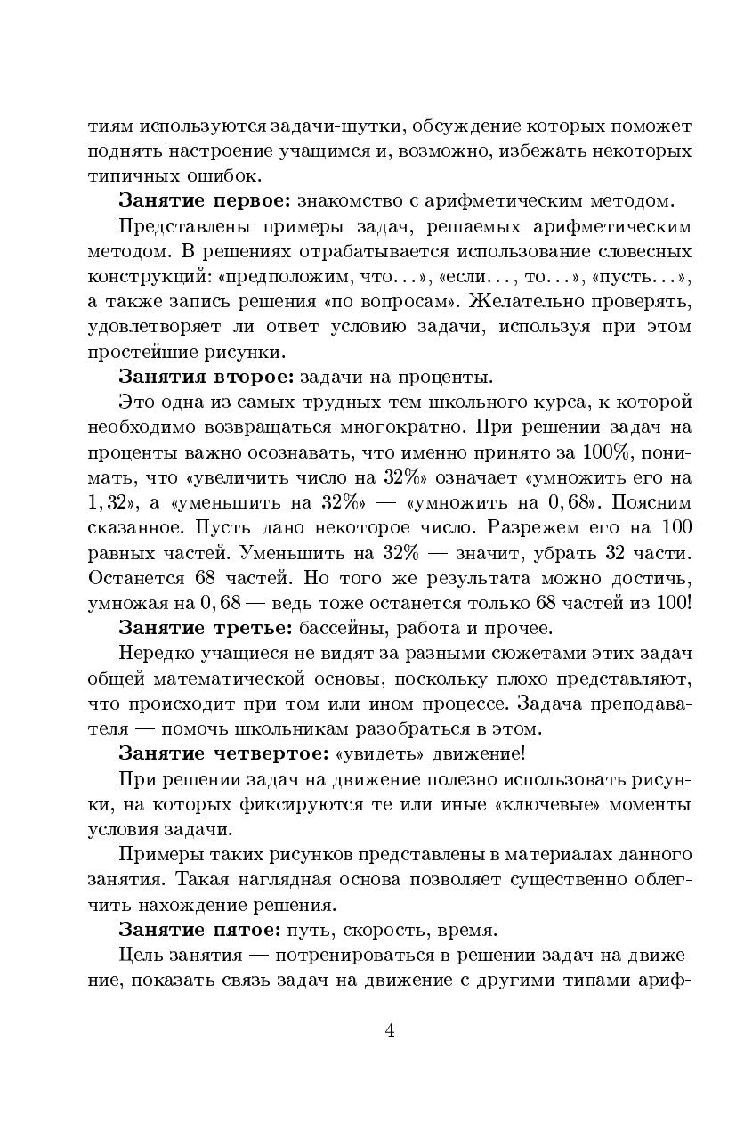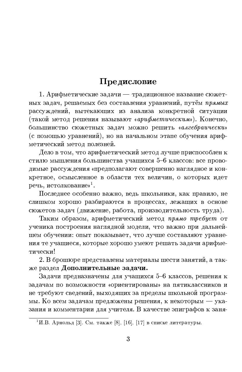 Третья брошюра серии ШКОЛЬНЫЕ МАТЕМАТИЧЕСКИЕ КРУЖКИ посвящена текстовым задачам, решаемым «арифметическим» способом. В ней приведены шесть занятий, в которых подобраны задачи, ориентированные в основном на работу со школьниками 5–6 классов.Все приведенные сюжетные задачи решаются путем прямых рассуждений, вытекающих из анализа конкретной ситуации. Конечно, большинство из них можно решить «алгебраически» (с помощью уравнений), но на начальном этапе обучения овладение арифметическим методом представляется очень важным для развития логического мышления школьников, для приобретения ими навыков анализа текста и умений рассуждать и делать правильные выводы.Надеемся, что книжка будет интересна учителям математики, руководителям математических кружков, студентам педагогических вузов и всем, кто занимается со школьниками.