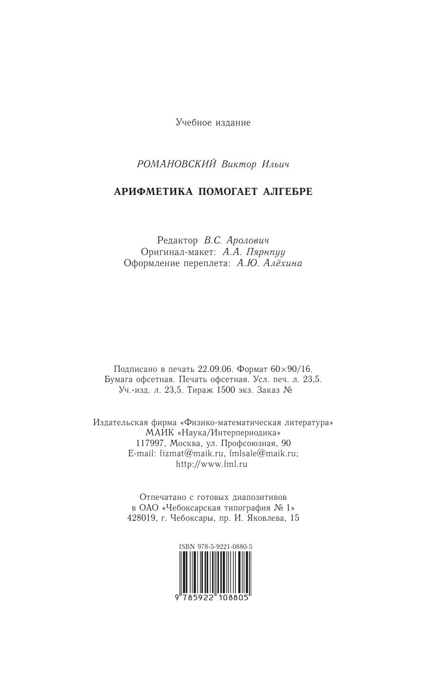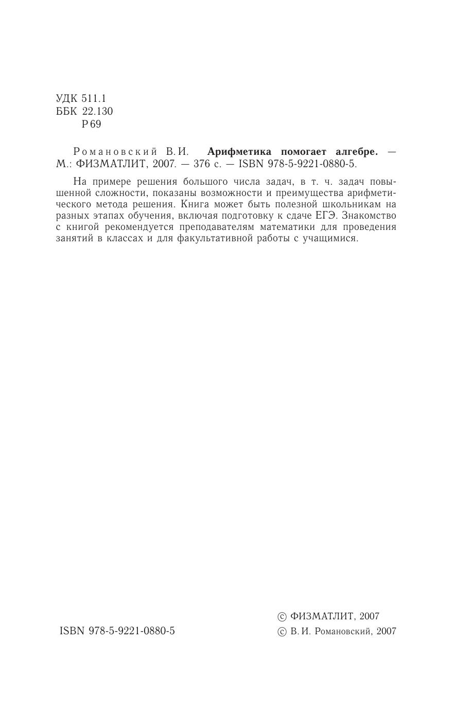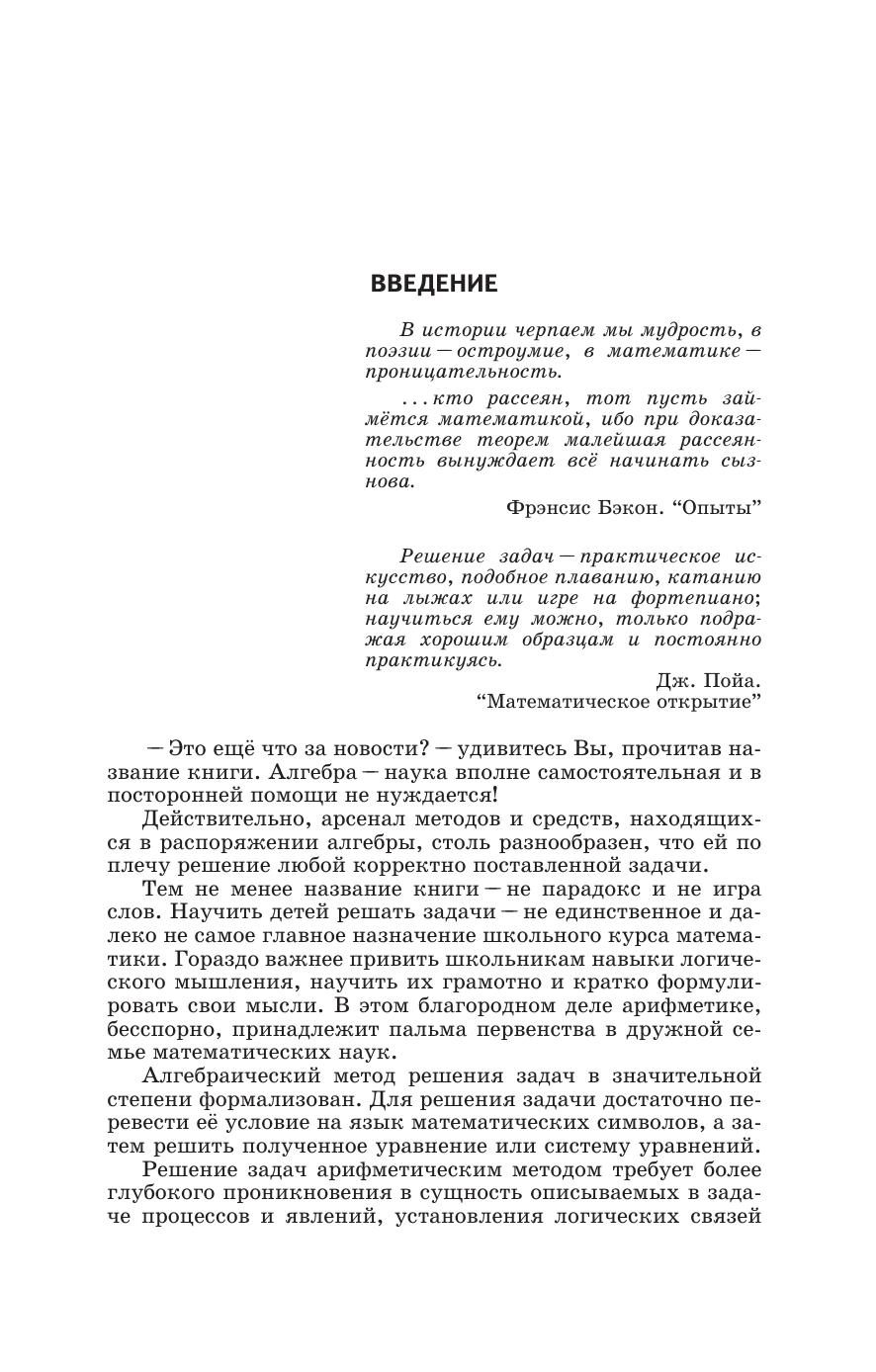 На примере решения большого числа задач, в т. ч. задач повышенной сложности, показаны возможности и преимущества арифметического метода решения. Книга может быть полезной школьникам на разных этапах обучения, включая подготовку к сдаче ЕГЭ. Знакомство с книгой рекомендуется преподавателям математики для проведения занятий в классах и для факультативной работы с учащимися.
