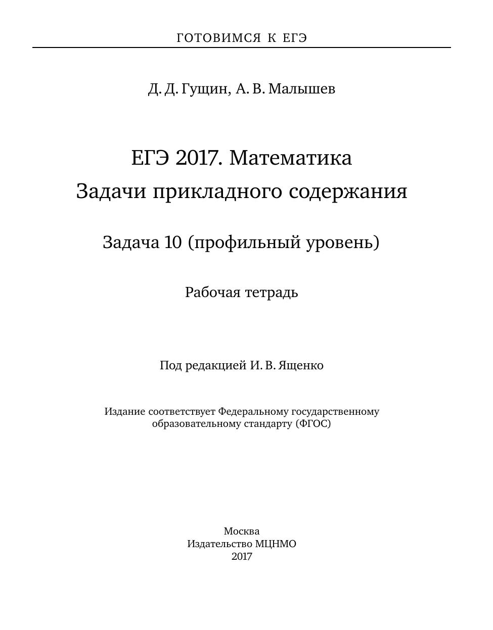 ЕГЭ 2017. Математика. Задачи прикладного содержания. Задача 10 (профильный уровень). Рабочая тетрадь