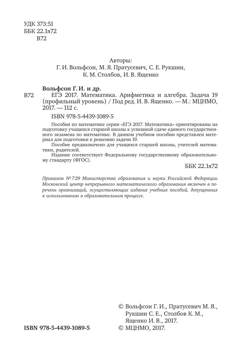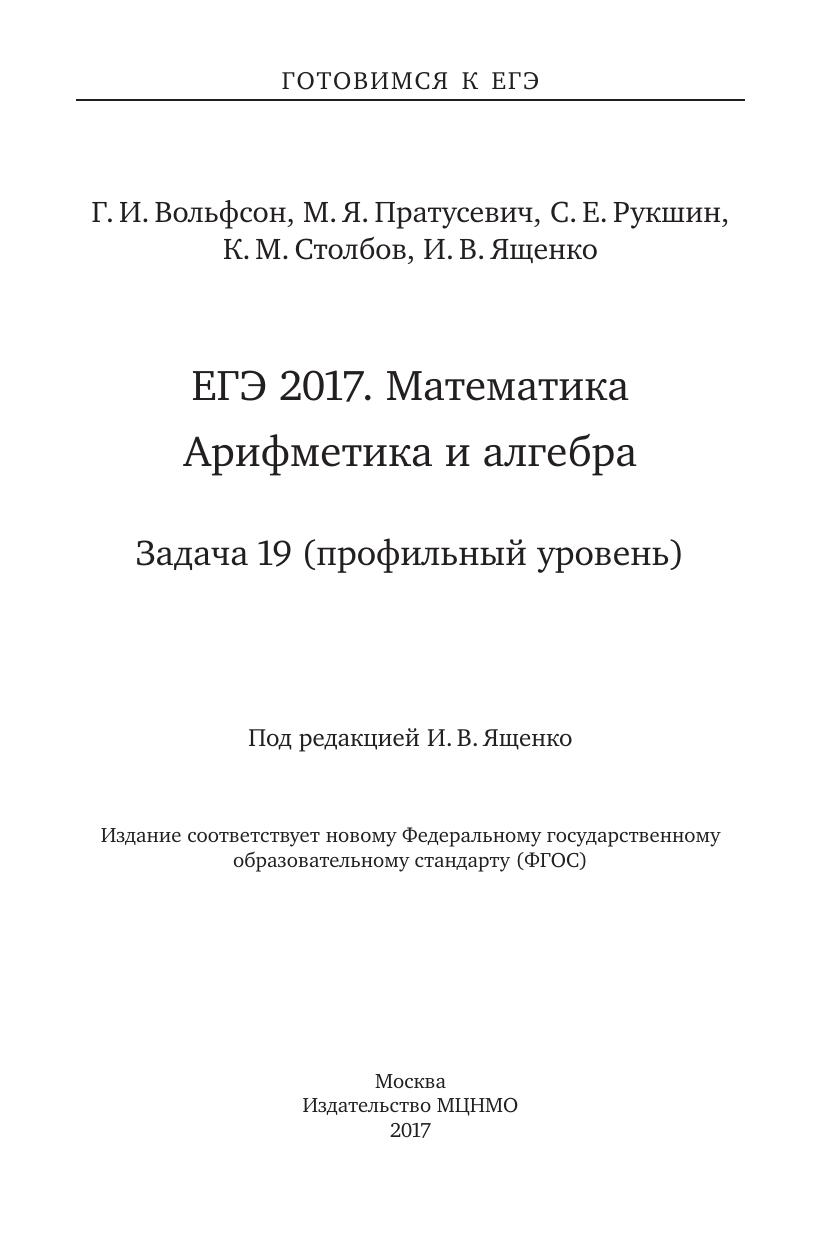 Пособия по математике серии «ЕГЭ 2017. Математика» ориентированы на подготовку учащихся старшей школы к успешной сдаче единого государственного экзамена по математике. В данном учебном пособии представлен материал для подготовки к решению задачи ??. Пособие предназначено для учащихся старшей школы, учителей математики, родителей.