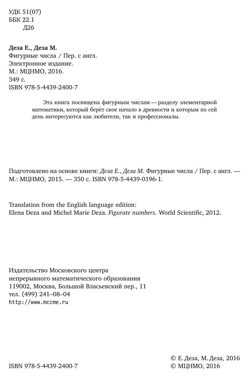 Эта книга посвящена фигурным числам—разделу элементарной математики, который берёт свое начало в древности и которым по сей день интересуются как любители, так и профессионалы.