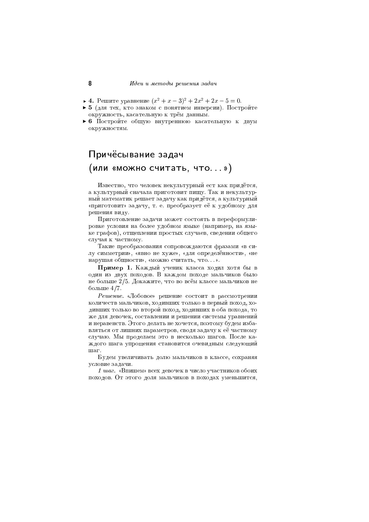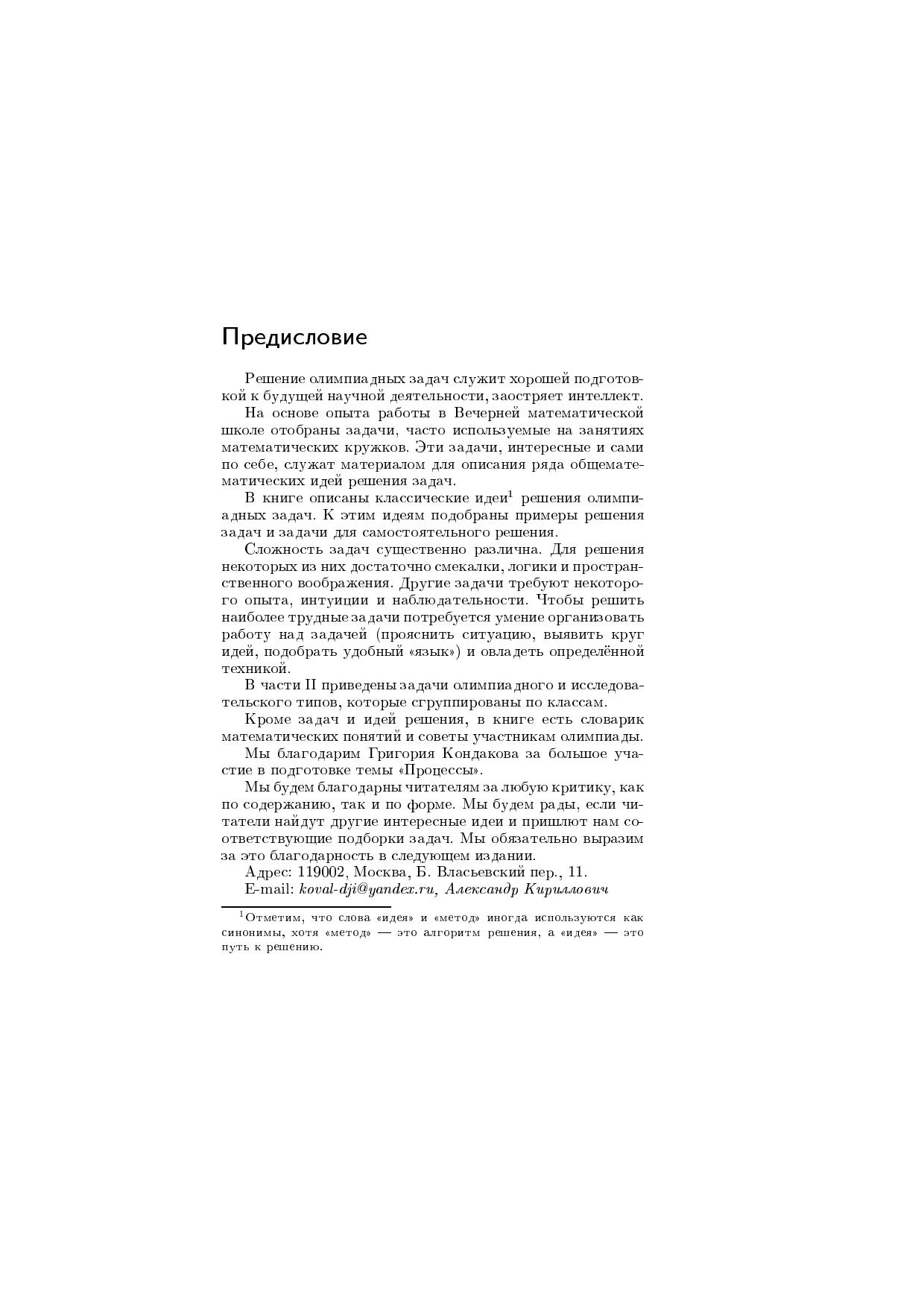 В книге описан ряд классических идей решения олимпиадных задач, которые для большинства школьников являются нестандартными. Каждая идея снабжена комментарием, примерами решения задач и задачами для самостоятельного решения. Приведены подборки задач олимпиадного и исследовательского типов (всего 200 задач), которые сгруппированы по классам.Сборник адресован старшеклассникам, учителям, руководителям кружков и всем любителям математики. Предыдущее издание книги вышло в 2008 г.