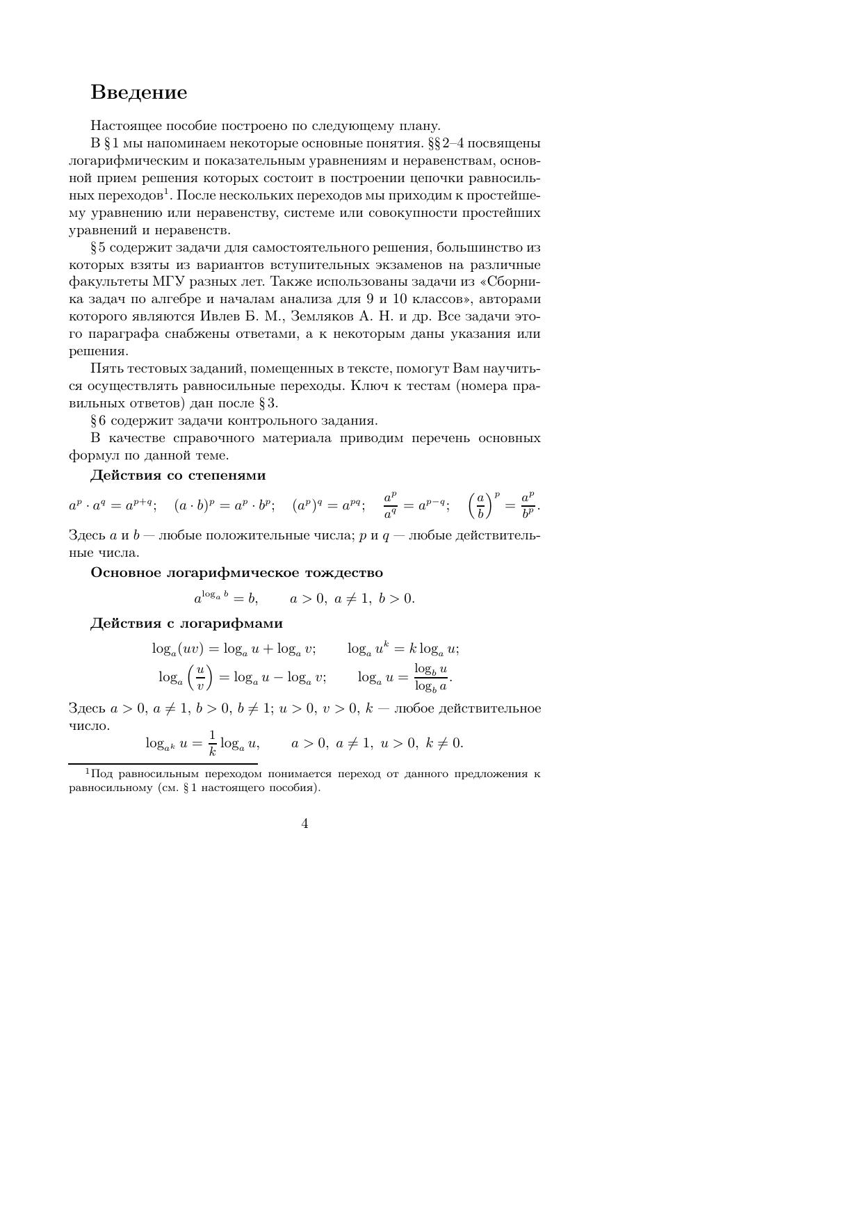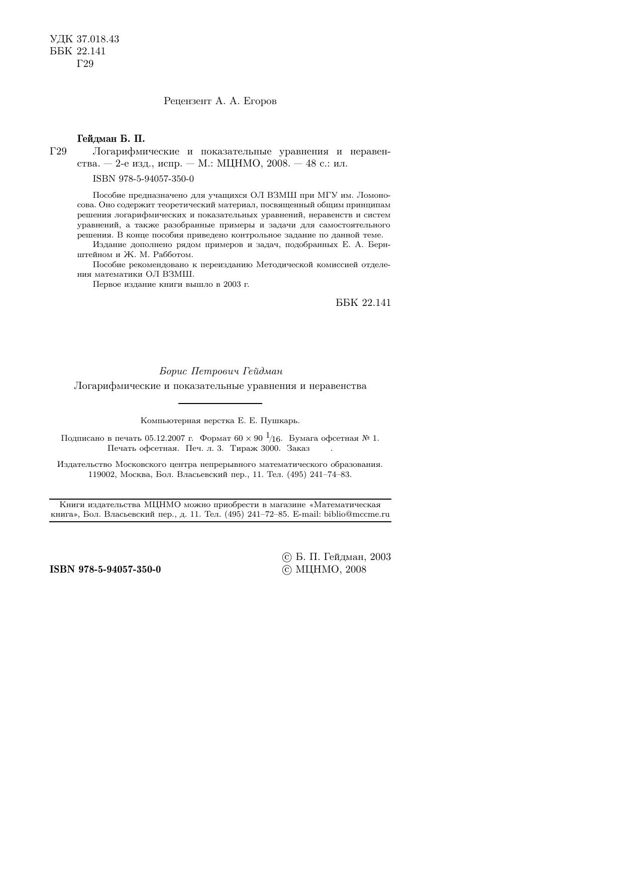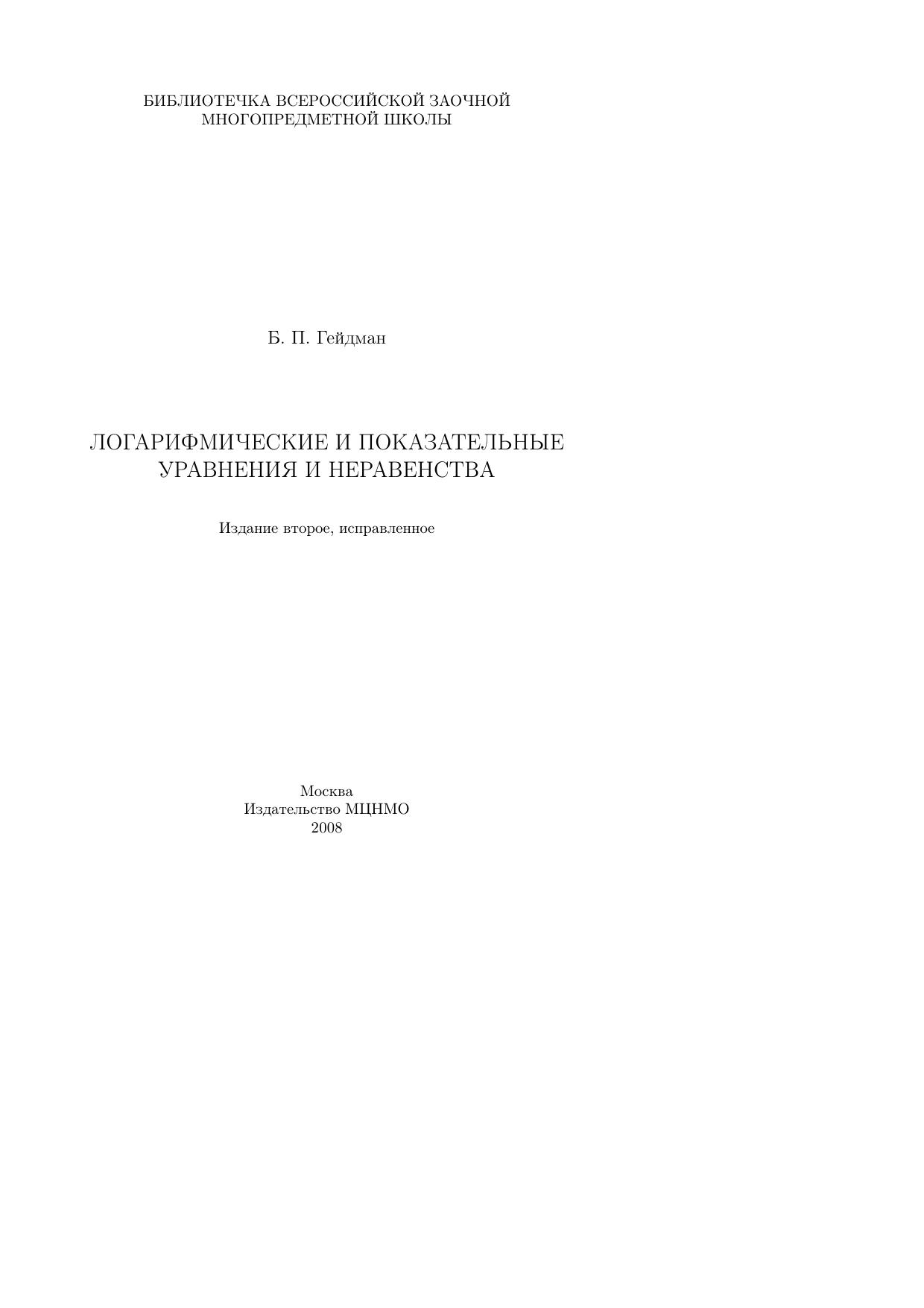 Пособие предназначено для учащихся ОЛ ВЗМШ при МГУ им. Ломоносова. Оно содержит теоретический материал, посвященный общим принципам решения логарифмических и показательных уравнений, неравенств и систем уравнений, а также разобранные примеры и задачи для самостоятельного решения. В конце пособия приведено контрольное задание по данной теме. Издание дополнено рядом примеров и задач, подобранных Е. А. Бернштейном и Ж. М. Рабботом.Пособие рекомендовано к переизданию Методической комиссией отделения математики ОЛ ВЗМШ. Первое издание книги вышло в 2003 г.