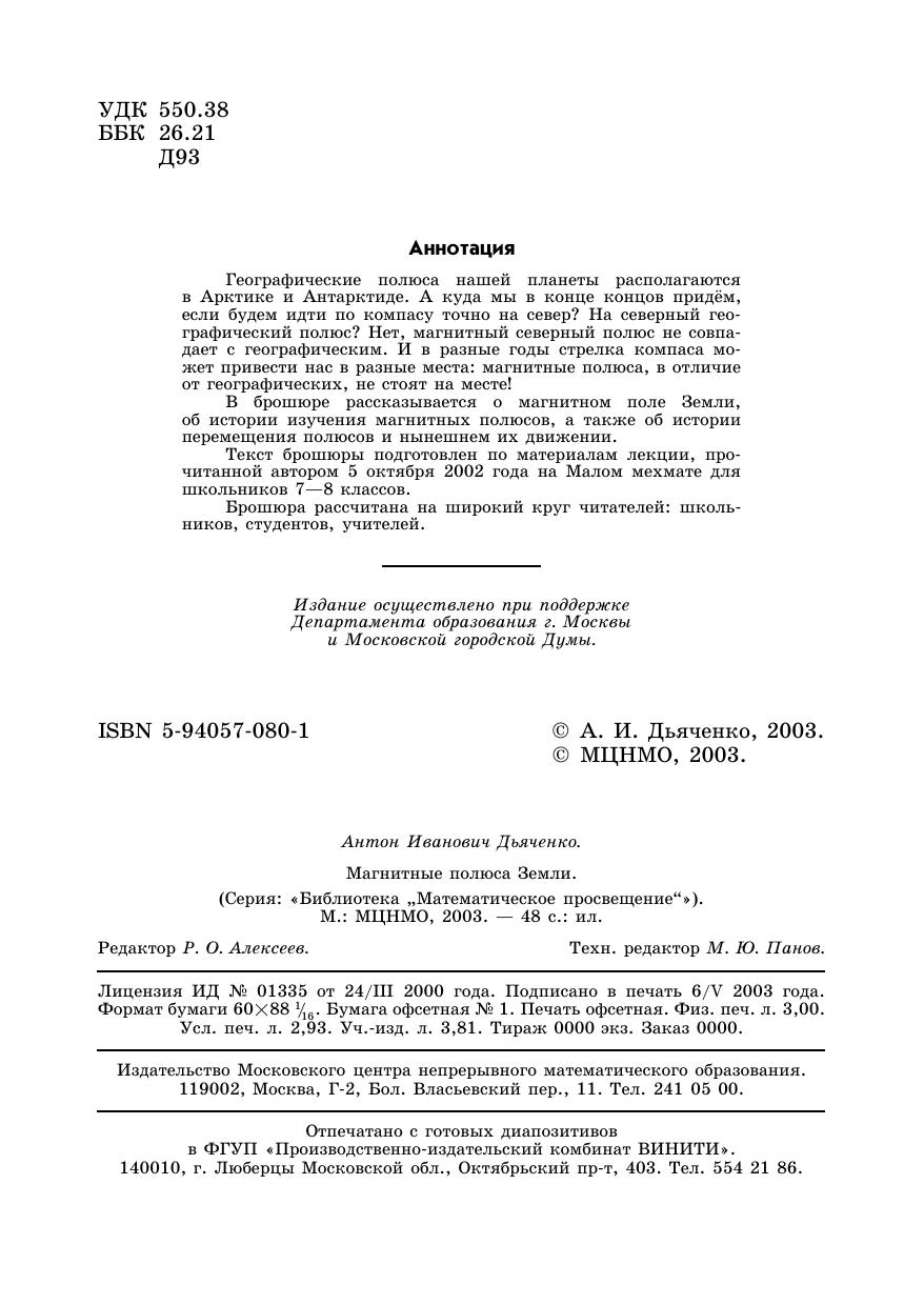 Географические полюса нашей планеты располагаются в Арктике и Антарктиде. А куда мы в конце концов придём, если будем идти по компасу точно на север? На северный географический полюс? Нет, магнитный северный полюс не совпадает с географическим. И в разные годы стрелка компаса может привести нас в разные места: магнитные полюса, в отличие от географических, не стоят на месте! В брошюре рассказывается о магнитном поле Земли, об истории изучения магнитных полюсов, а также об истории перемещения полюсов и нынешнем их движении. Текст брошюры подготовлен по материалам лекции, прочитанной автором 5 октября 2002 года на Малом мехмате для школьников 7–8 классов.Брошюра рассчитана на широкий круг читателей: школьников, студентов, учителей.