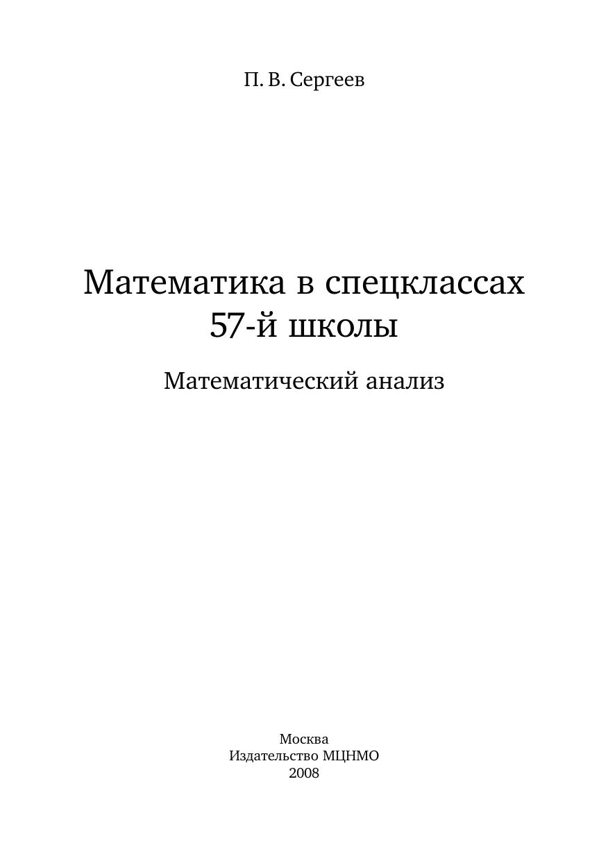 Математика в спецклассах 57-й школы. Математический анализ