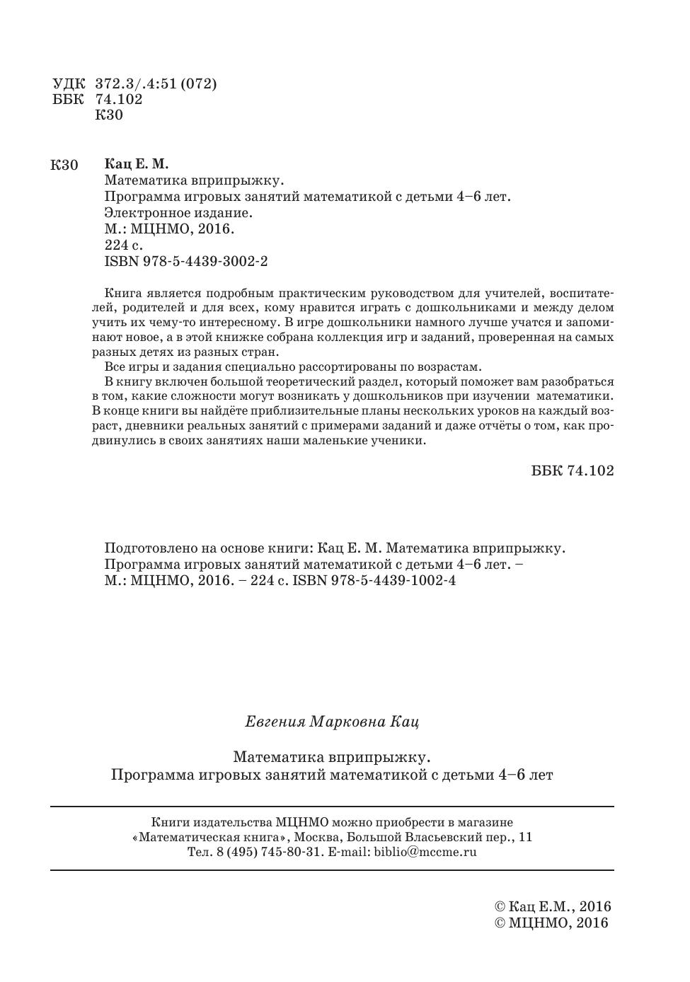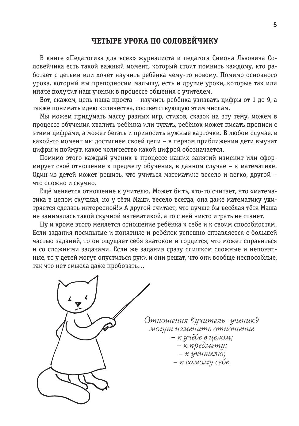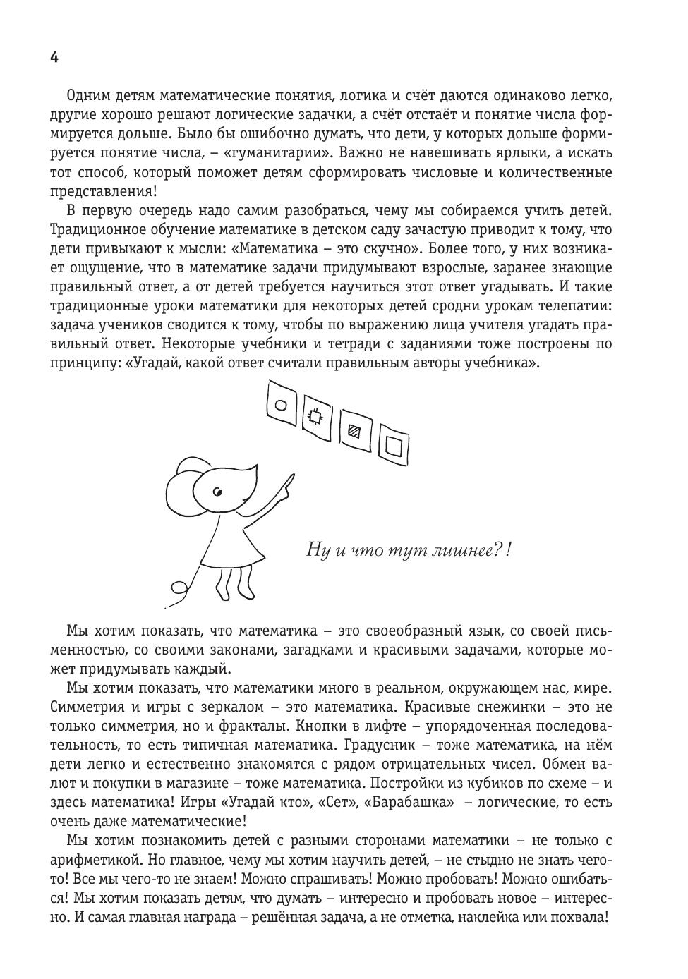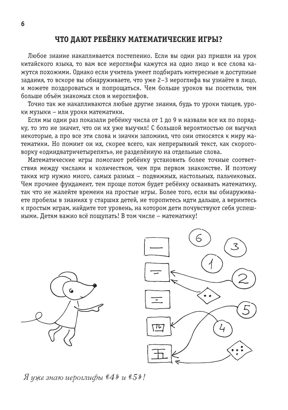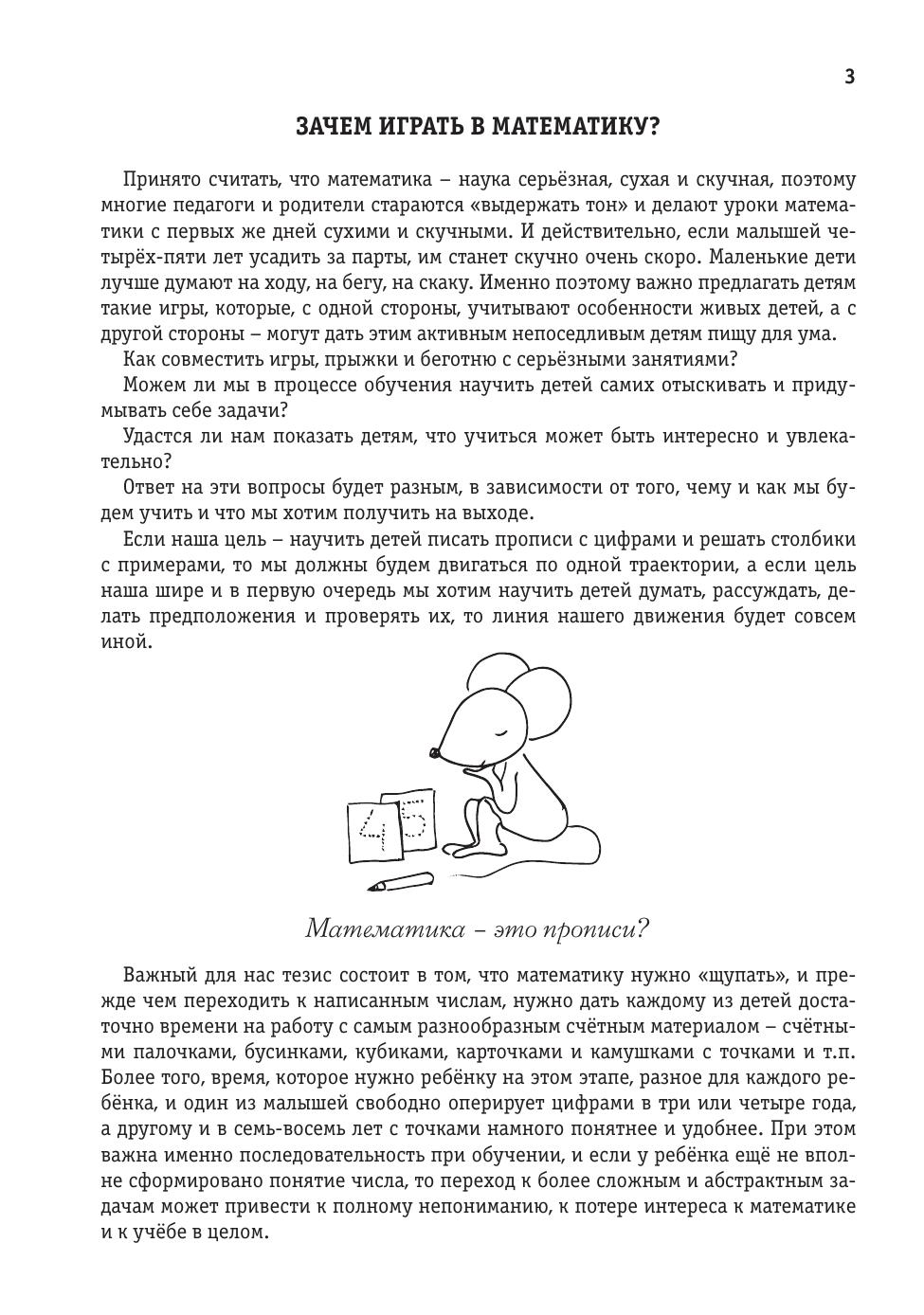 Книга является подробным практическим руководством для учителей, воспитателей, родителей и для всех, кому нравится играть с дошкольниками и между делом учить их чему-то интересному. В игре дошкольники намного лучше учатся и запоминают новое, а в этой книжке собрана коллекция игр и заданий, проверенная на самых разных детях из разных стран. Все игры и задания специально рассортированы по возрастам. В книгу включен большой теоретический раздел, который поможет вам разобраться в том, какие сложности могут возникать у дошкольников при изучении математики. В конце книги вы найдёте приблизительные планы нескольких уроков на каждый возраст, дневники реальных занятий с примерами заданий и даже отчёты о том, как продвинулись в своих занятиях наши маленькие ученики.