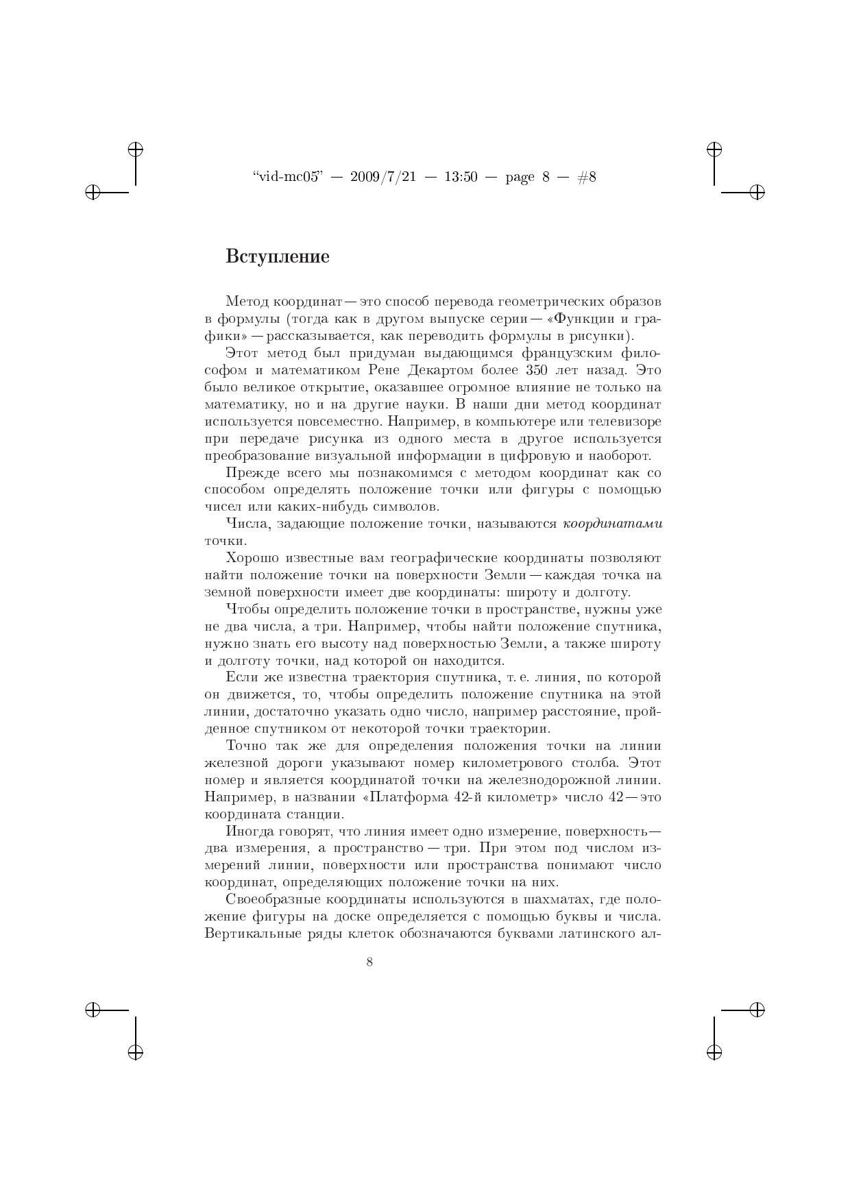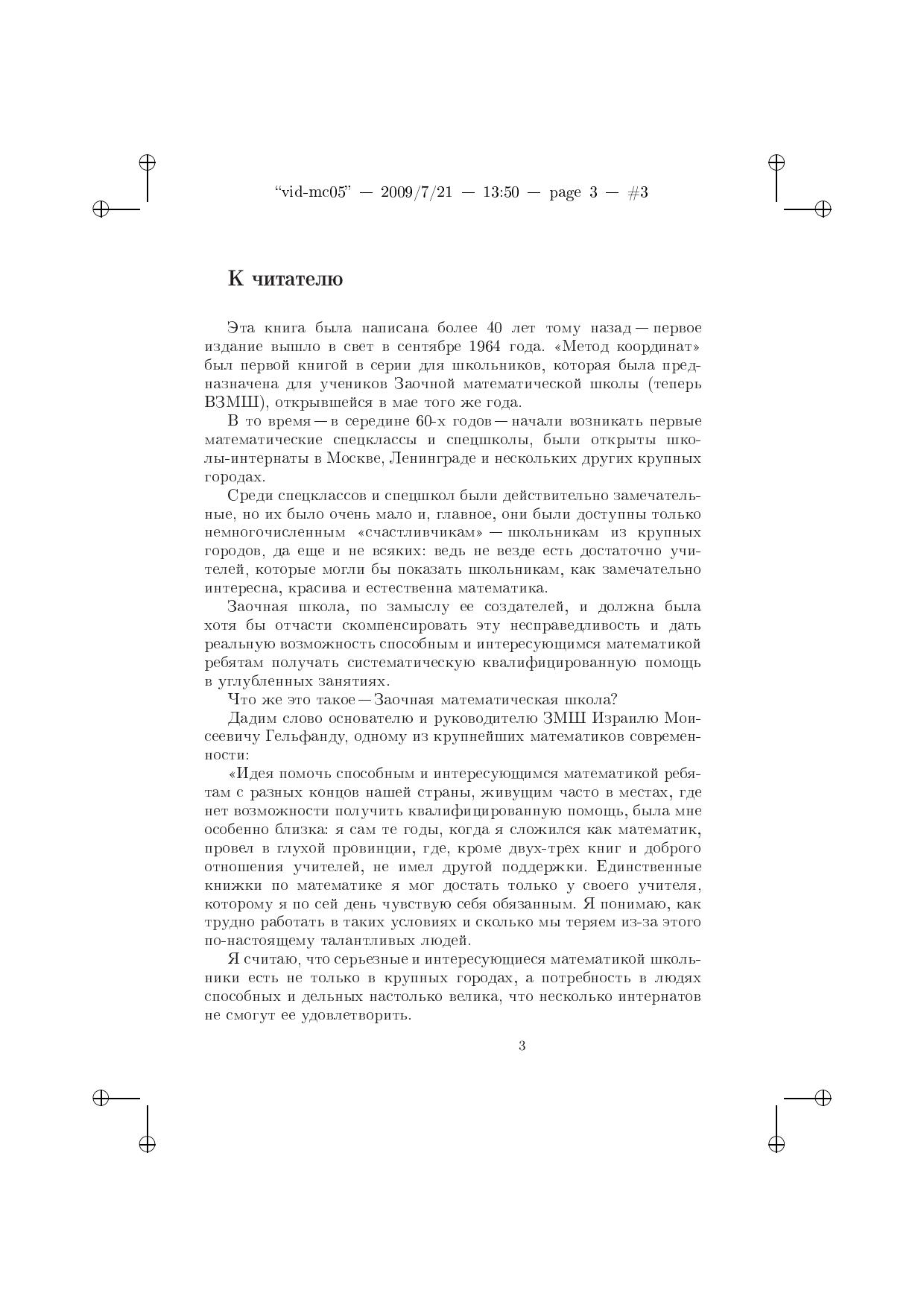 Книга «Метод координат» является пособием для обучения школьников, проявляющих интерес к математике.Изложение идет от простейших, знакомых даже младшим школьникам вещей (координаты точки на прямой) и доходит до понятия о четырехмерном пространстве и его свойствах.Книга содержит большое количество задач разного уровня сложности. Она рассчитана прежде всего на учеников ОЛ ВЗМШ и других заочных математических школ, но будет полезна учителям средних и старших классов при проведении факультативов и в работе на уроках. Простота и ясность изложения делают книгу доступной для всех желающих самостоятельно заниматься математикой. Предыдущее издание книги вышло в 2007 г.