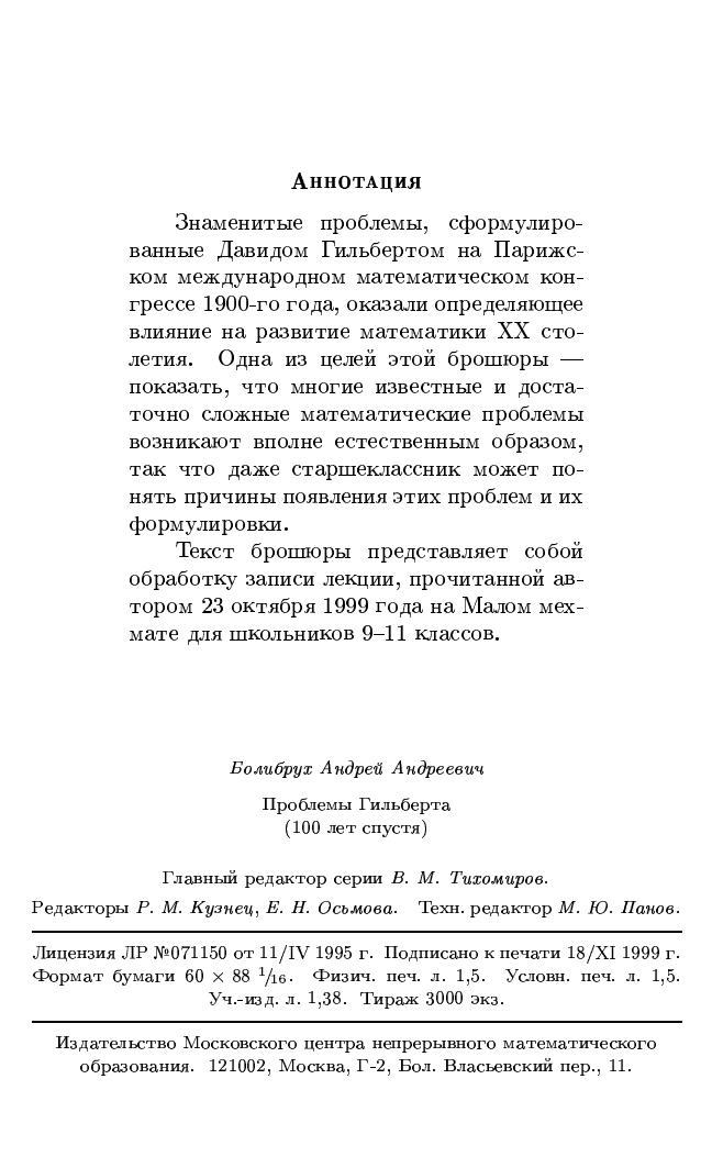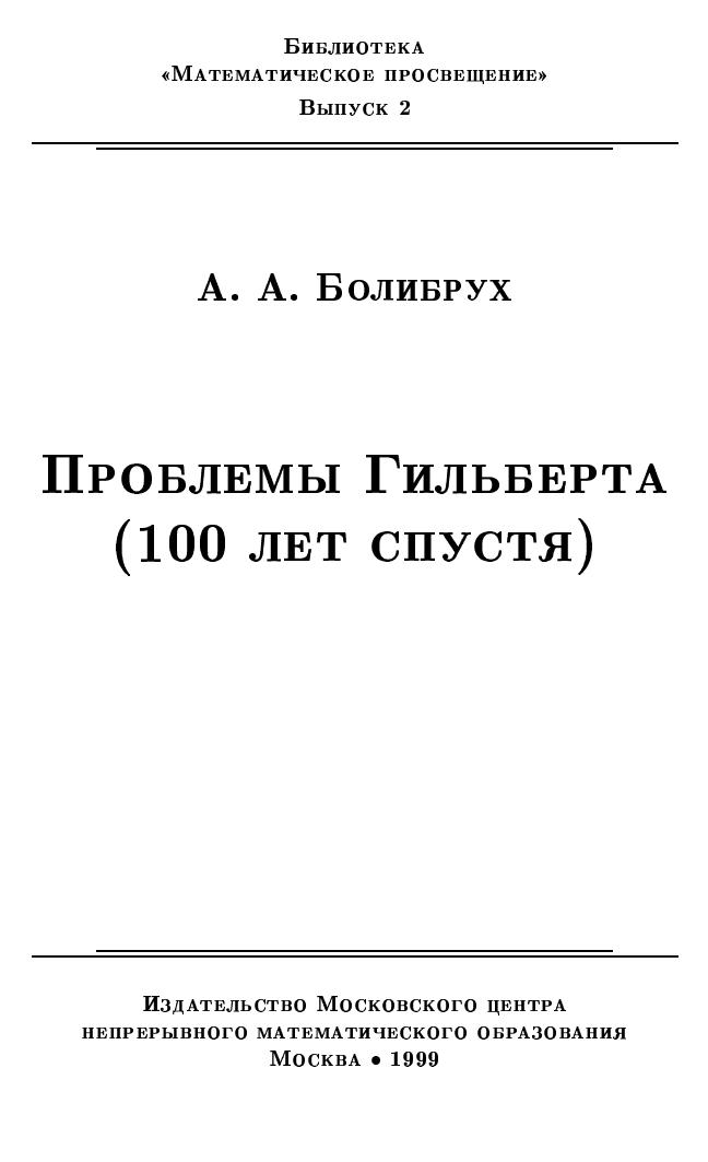 Знаменитые проблемы, сформулированные Давидом Гильбертом на Парижском международном математическом конгрессе 1900-го года, оказали определяющее влияние на развитие математики XX столетия. Одна из целей этой брошюры - показать, что многие известные и достаточно сложные математические проблемы возникают вполне естественным образом, так что даже старшеклассник может понять причины появления этих проблем и их формулировки.Текст брошюры представляет собой обработку записи лекции, прочитанной автором 23 октября 1999 года на Малом мехмате для школьников 9-11 классов.