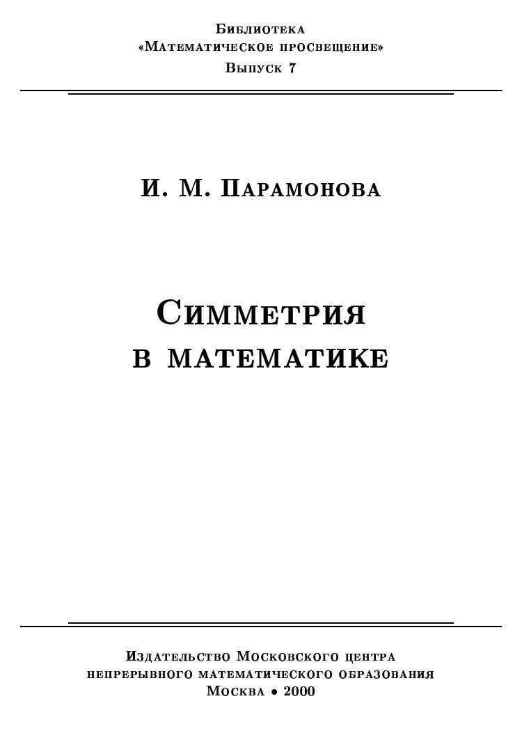 В брошюре рассказывается о том, что понимается под симметрией в современной математике и как идеи, связанные с симметрией, помогают решать самые разные задачи. В частности, объясняется, что такое группа преобразований и её инварианты.Текст брошюры представляет собой обработку записей лекций, прочитанных автором 12 февраля 2000 года (запись Е.Н.Осьмовой, под редакцией Р.М.Кузнеца) и 27 октября 2001 года (запись М.Ю.Панова, под редакцией А.А.Ермаченко) на Малом мехмате МГУ для школьников 9–11 классов.Брошюра рассчитана на широкий круг читателей, интересующихся математикой: школьников старших классов, студентов младших курсов, учителей...