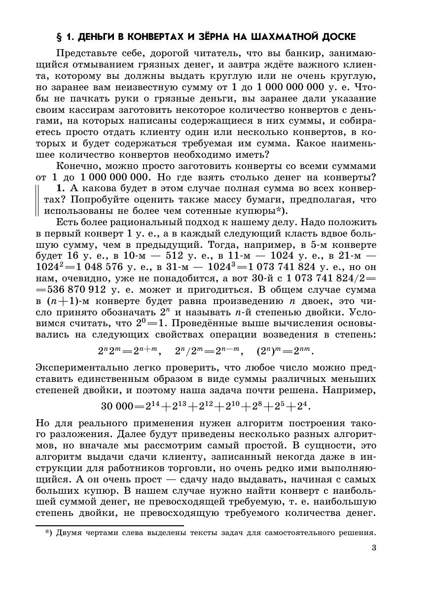 Различные системы счисления используются всегда, когда появляется потребность в числовых расчётах, начиная с вычислений младшеклассника, выполняемых карандашом на бумаге, кончая вычислениями, выполняемыми на суперкомпьютерах.В книжке кратко изложены и занимательно описаны некоторые из наиболее популярных систем счисления, история их возникновения, а также их применения, как старые, так и новые, как забавные,так и серьёзные.Большая часть книги доступна школьникам 7—8 классов, но и опытный читатель может найти в ней кое-что новое для себя.Текст книжки написан на основе лекций, прочитанных автором в школе им. А. Н. Колмогорова при МГУ и на Малом мехмате МГУ.Рассчитана на широкий круг читателей, интересующихся математикой: школьников, учителей