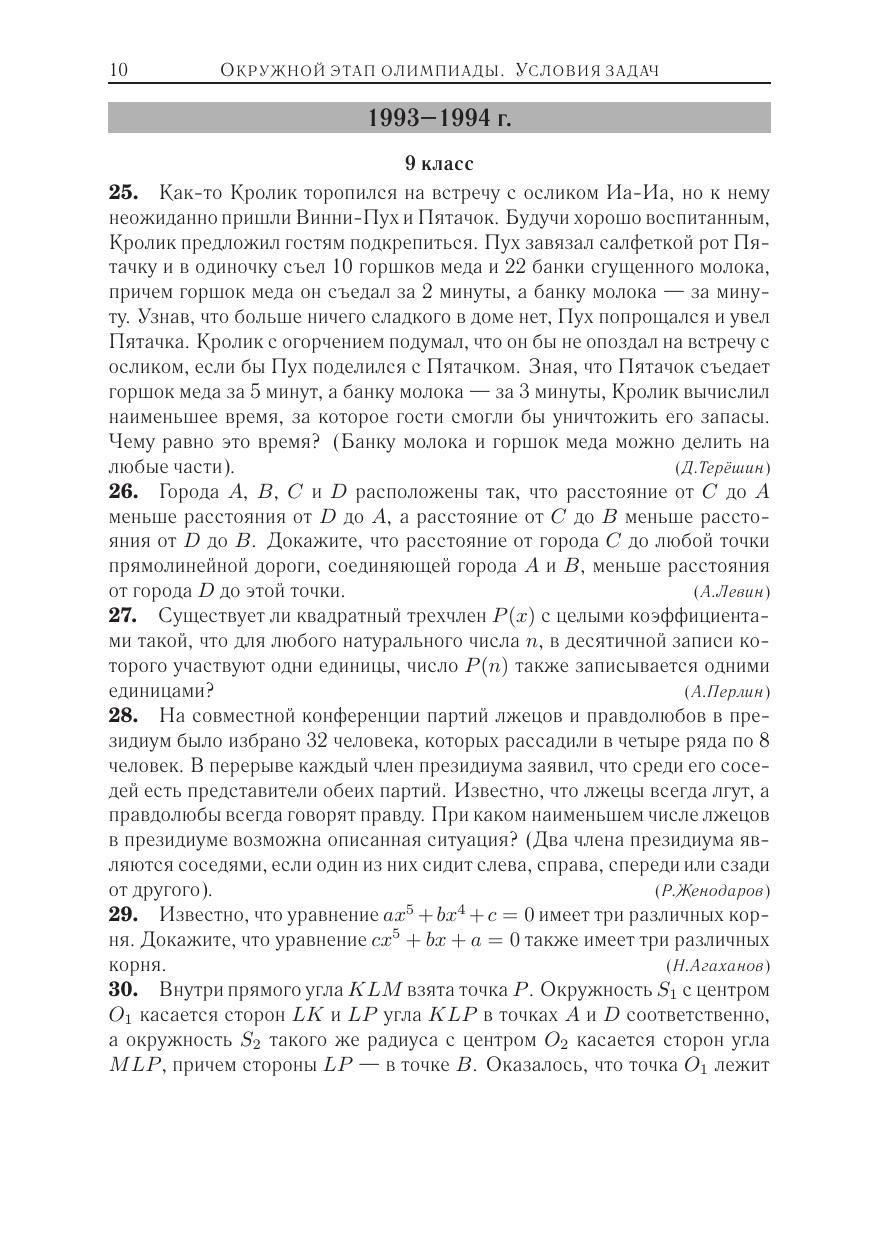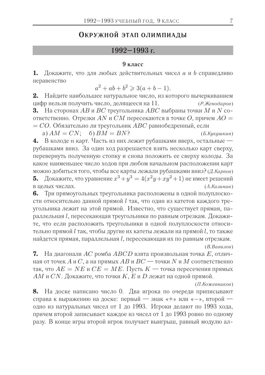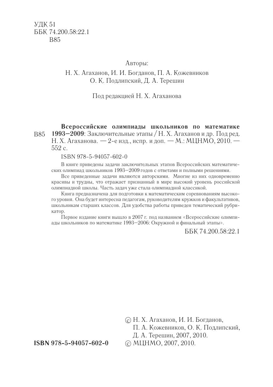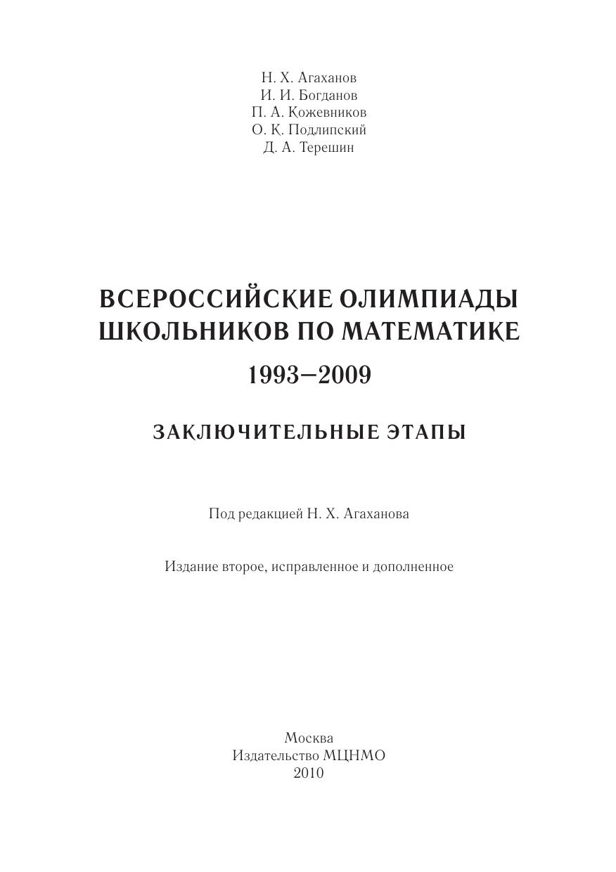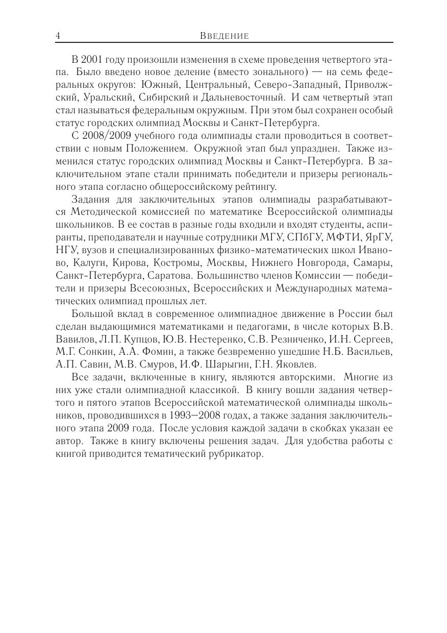 В книге приведены задачи заключительных (четвертого и пятого) этапов Всероссийских математических олимпиад школьников 1993–2009 годов с ответами и полными решениями. Все приведенные задачи являются авторскими. Многие из них одновременно красивы и трудны, что отражает признанный в мире высокий уровень российской олимпиадной школы. Часть задач уже стала олимпиадной классикой.Книга предназначена для подготовки к математическим соревнованиям высокого уровня. Она будет интересна педагогам, руководителям кружков и факультативов, школьникам старших классов. Для удобства работы приведен тематический рубрикатор.