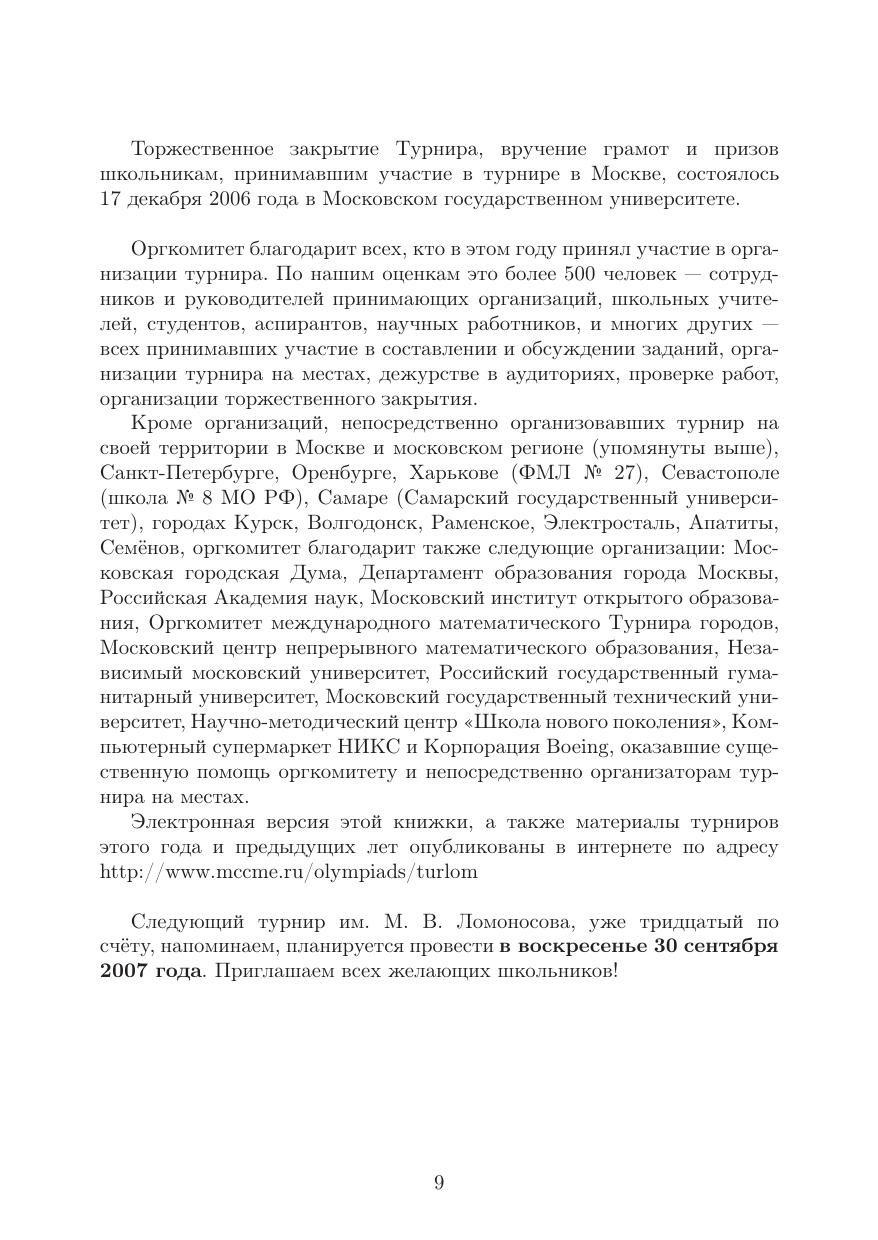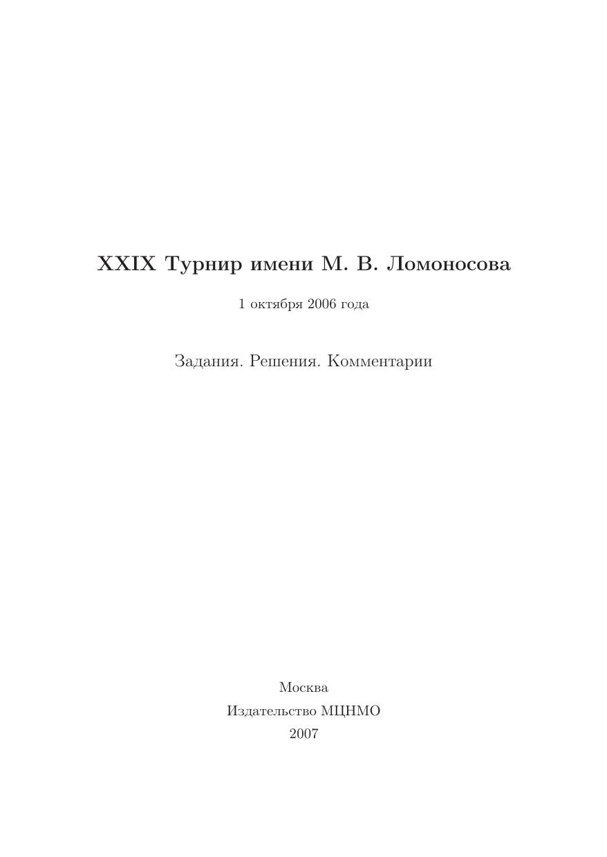 XXIX Турнир им. М. В. Ломоносова 1 октября 2006 года