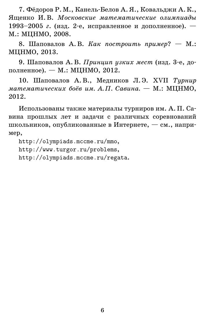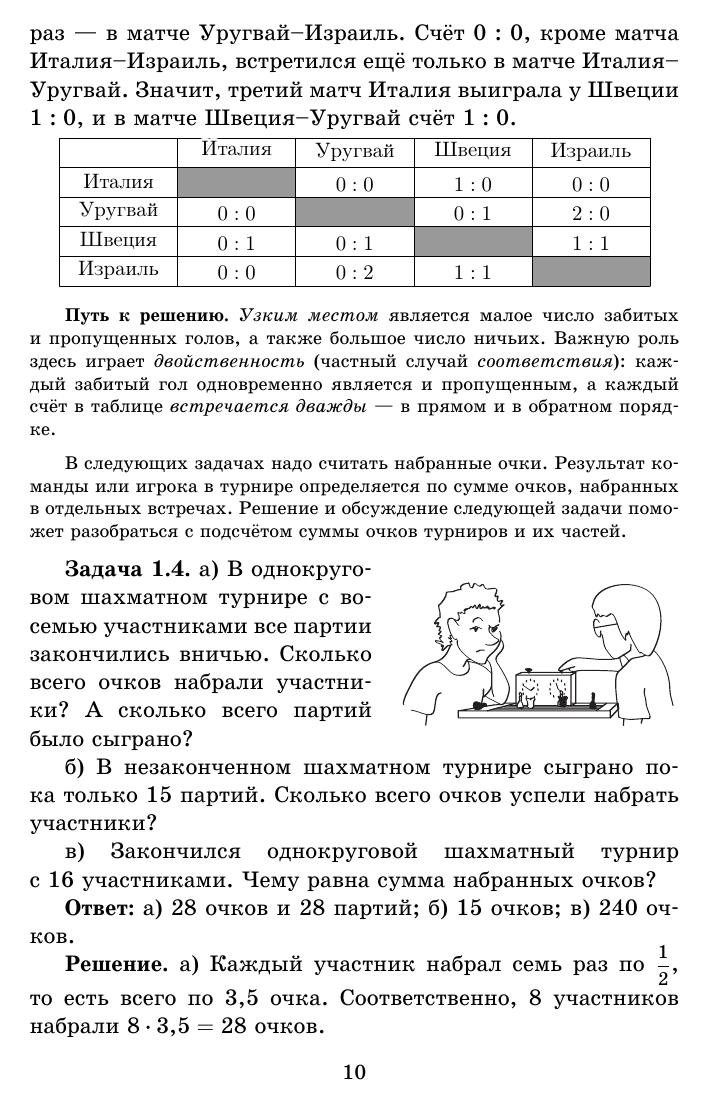50 дополнительных задач разной сложности. Первые три занятия рассчитаны на начинающих школьников, следующие три - на более подготовленных. Брошюра адресована руководителям математических кружков и школьным учителям математики. Надеемся, что она будет интересна школьникам, их родителям, а также всем любителям математики, видящим её не только в учебниках, но и в спорте, а также в других проявлениях окружающей нас жизни.