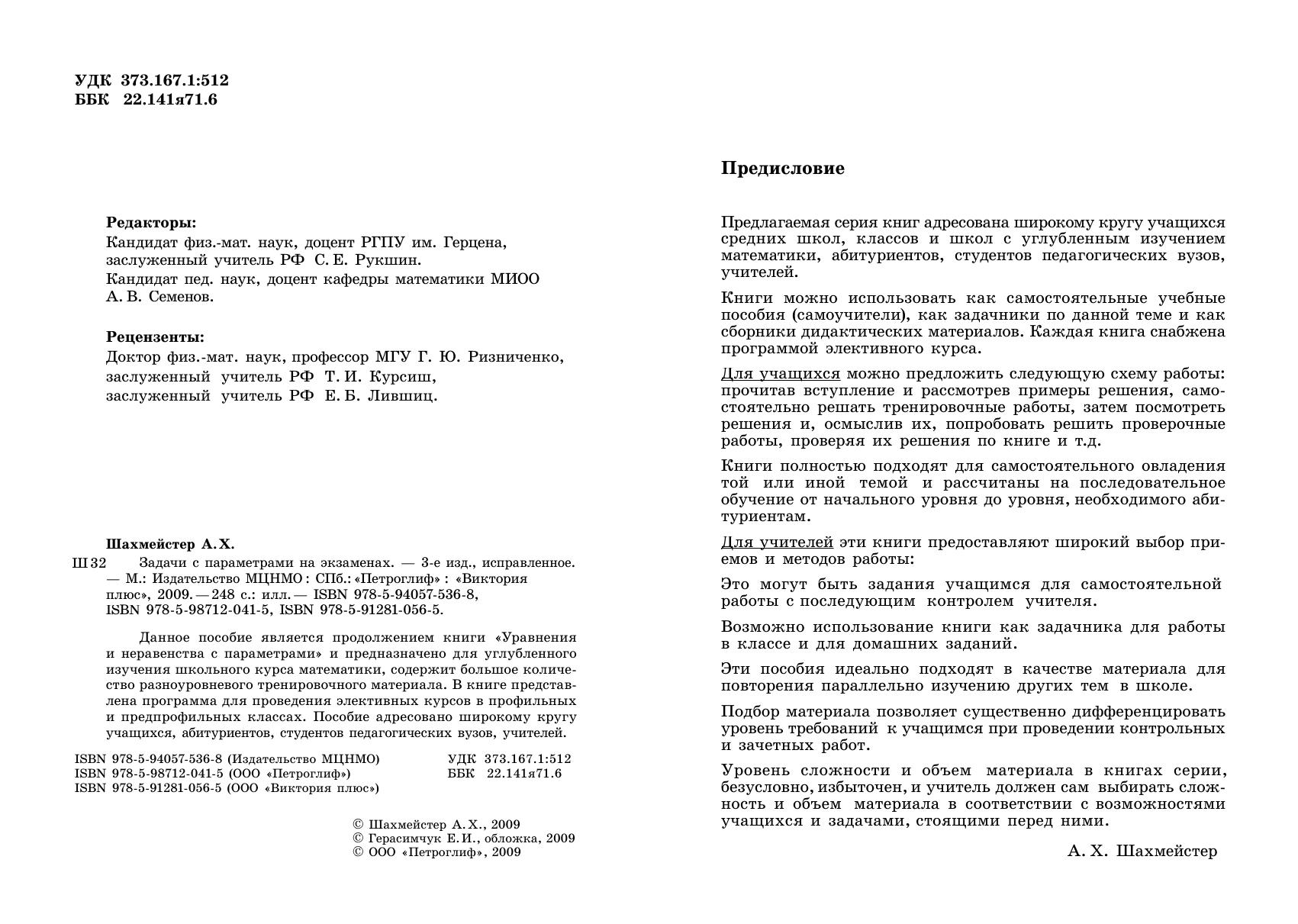 Данное пособие является продолжением книги «Уравнения и неравенства с параметрами» и предназначено для углубленного изучения школьного курса математики, содержит большое количество разноуровневого тренировочного материала.