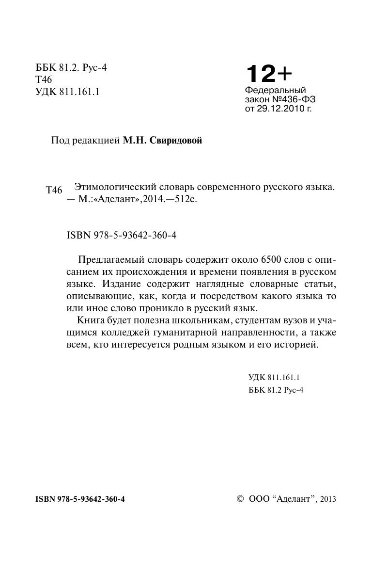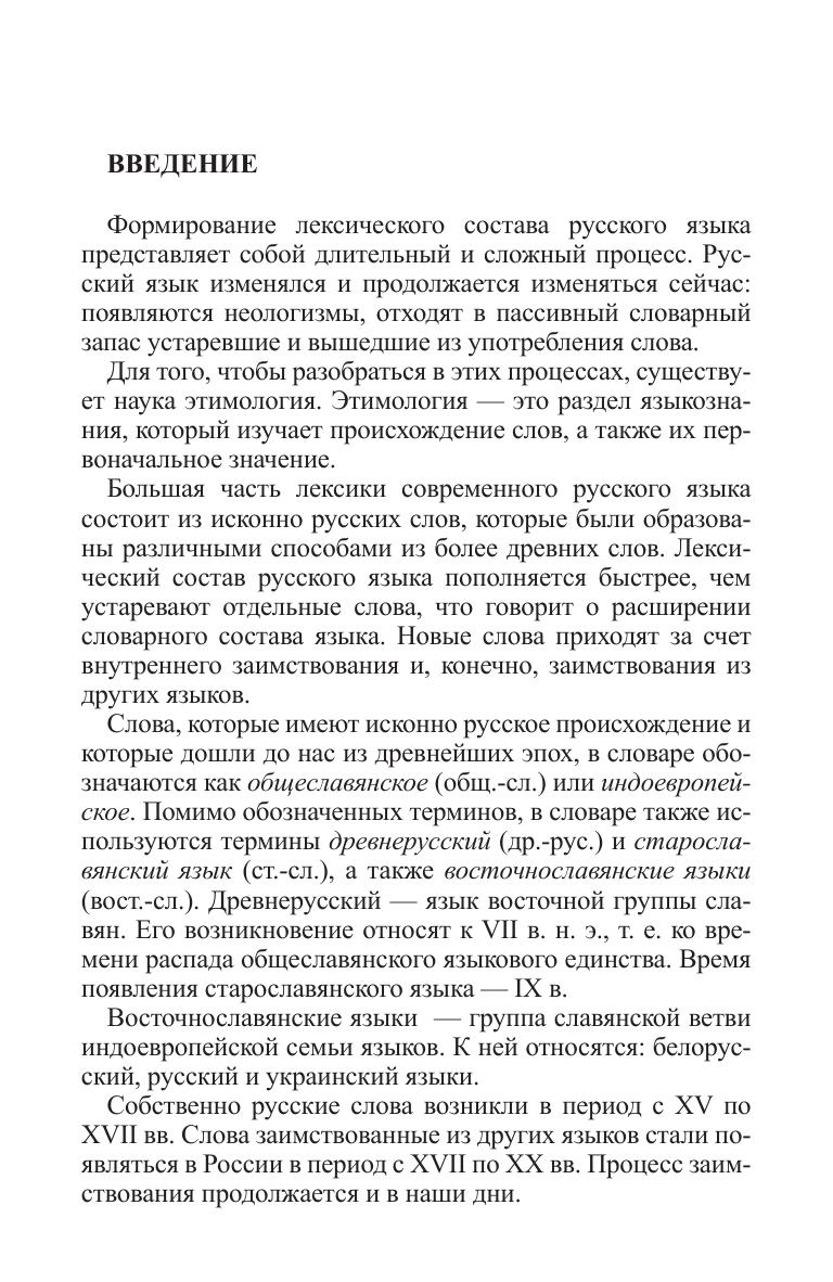 Предлагаемый словарь содержит около 6500 слов с описанием их происхождения и времени появления в русском языке. Издание содержит наглядные словарные статьи, описывающие, как, когда и посредством какого языка то или иное слово проникло в русский язык.