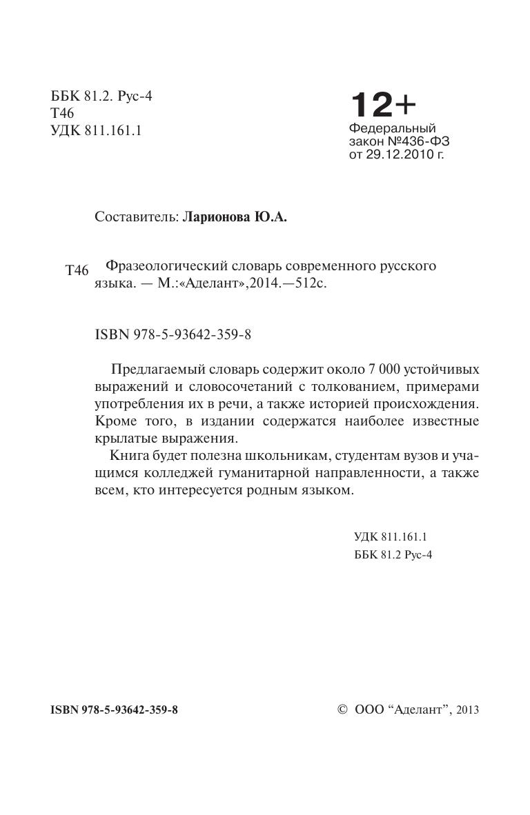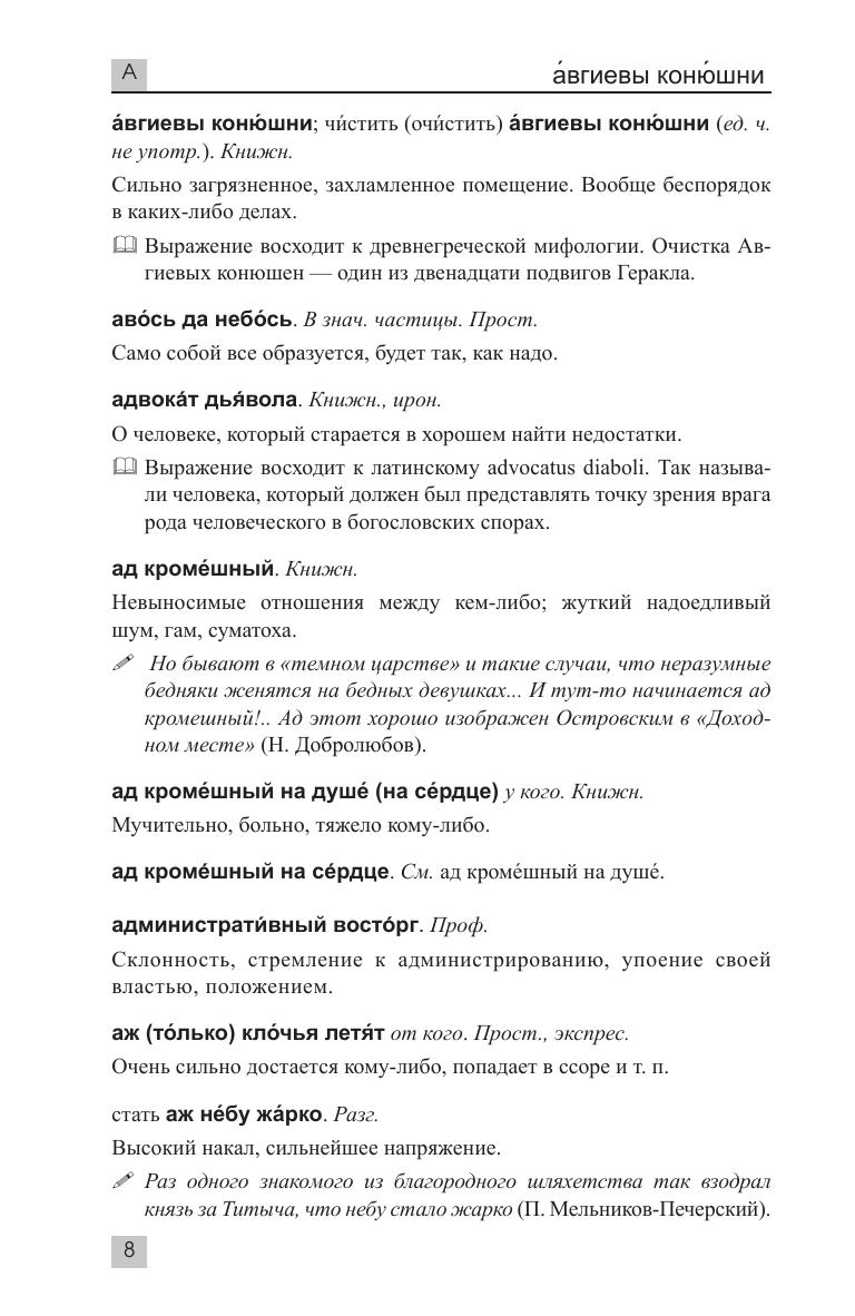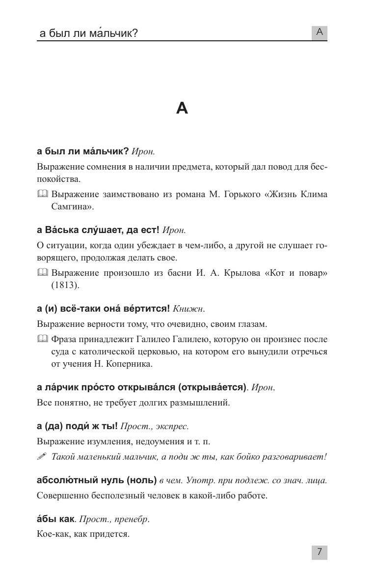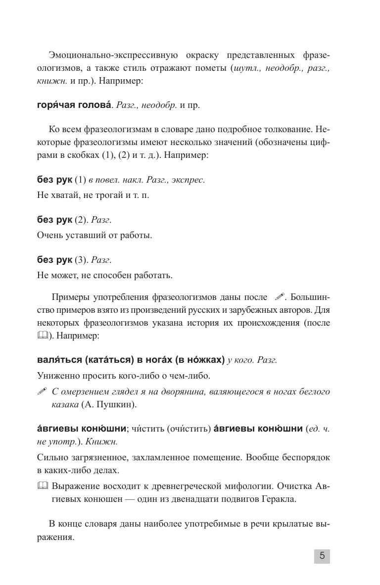 Предлагаемый словарь содержит около 7 000 устойчивых выражений и словосочетаний с толкованием, примерами употребления их в речи, а также историей происхождения. Кроме того, в издании содержатся наиболее известные крылатые выражения.