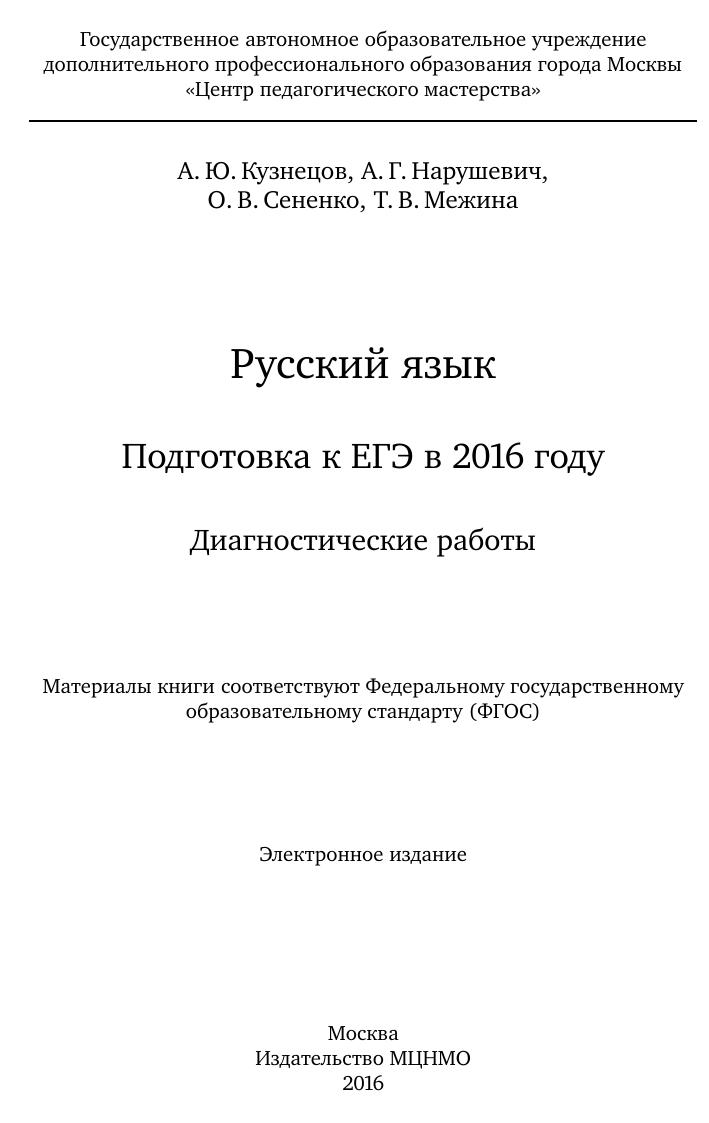 Русский язык. Подготовка к ЕГЭ в 2016 году. Диагностические работы