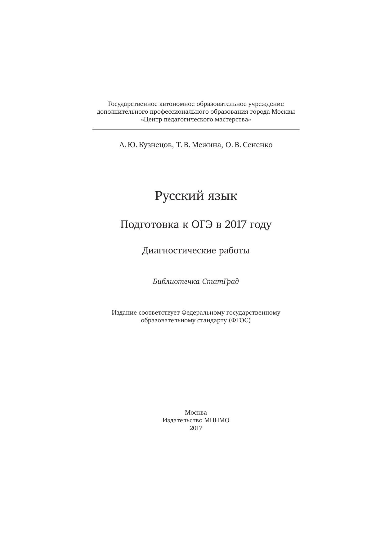 Русский язык. Подготовка к ОГЭ в 2017 году. Диагностические работы