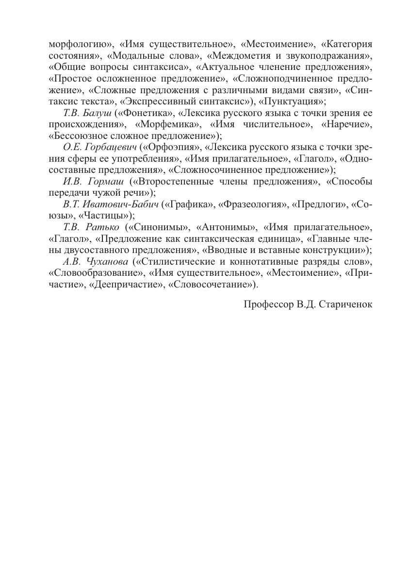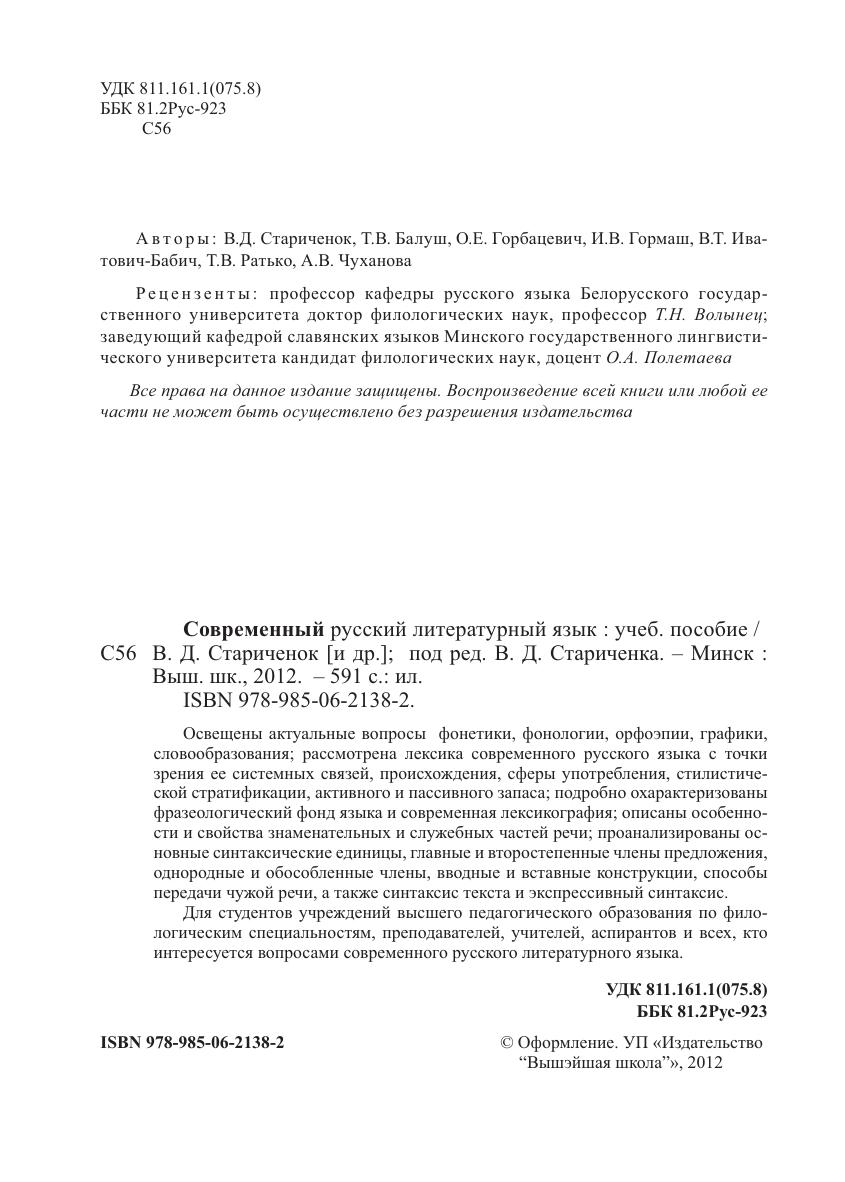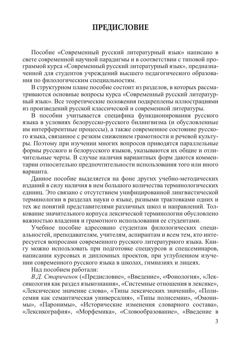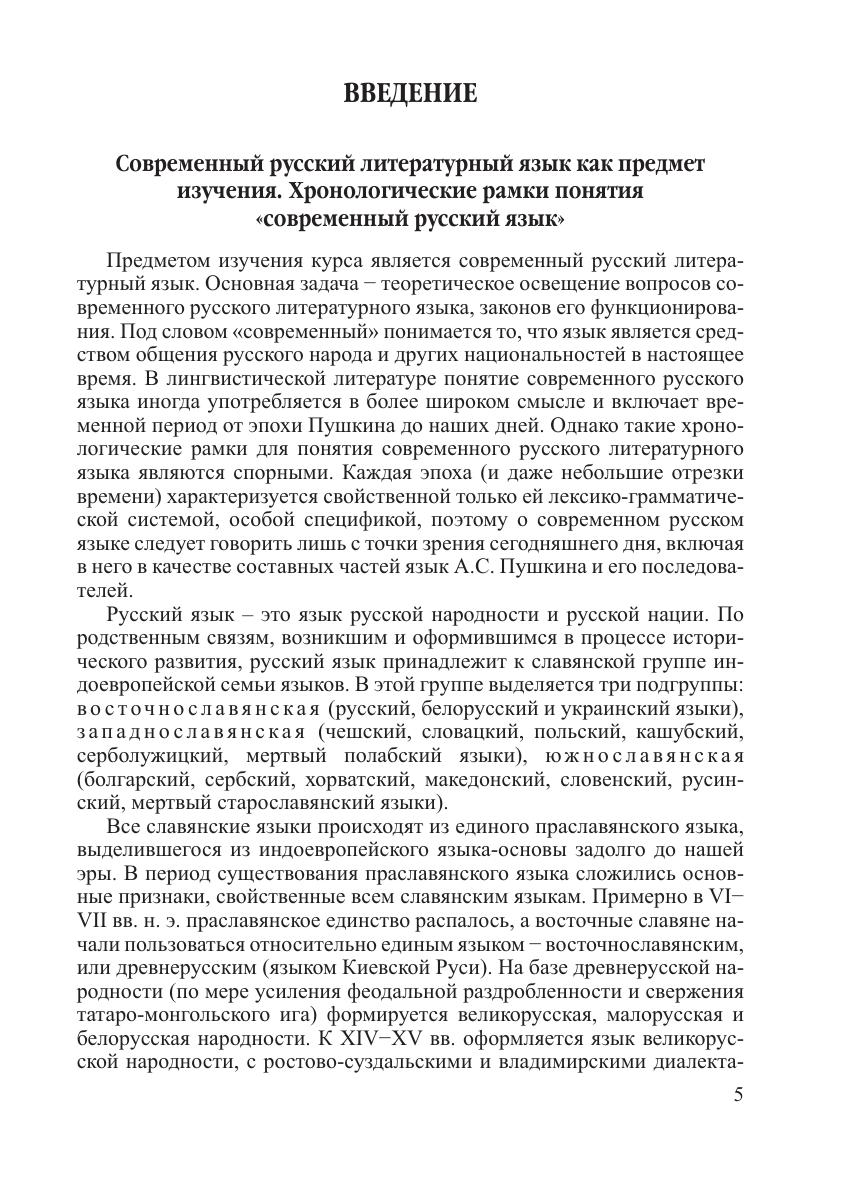 Освещены актуальные вопросы фонетики, фонологии, орфоэпии, графики, словообразования рассмотрена лексика современного русского языка с точки зрения ее системных связей, происхождения, сферы употребления, стилистической стратификации, активного и пассивного запаса подробно охарактеризованы фразеологический фонд языка и современная лексикография описаны особенности и свойства знаменательных и служебных частей речи проанализированы основные синтаксические единицы, главные и второстепенные члены предложения, однородные и обособленные члены, вводные и вставные конструкции, способы передачи чужой речи, а также синтаксис текста и экспрессивный синтаксис. Для студентов педагогических вузов по филологическим специальностям, преподавателей, учителей, аспирантов и всех, кто интересуется вопросами современного русского литературного языка.