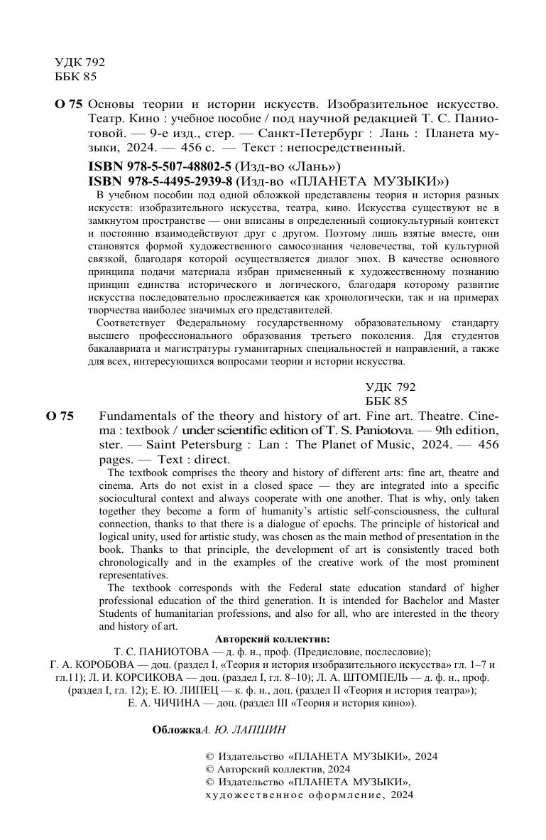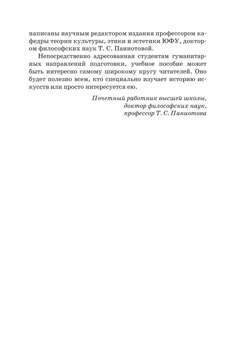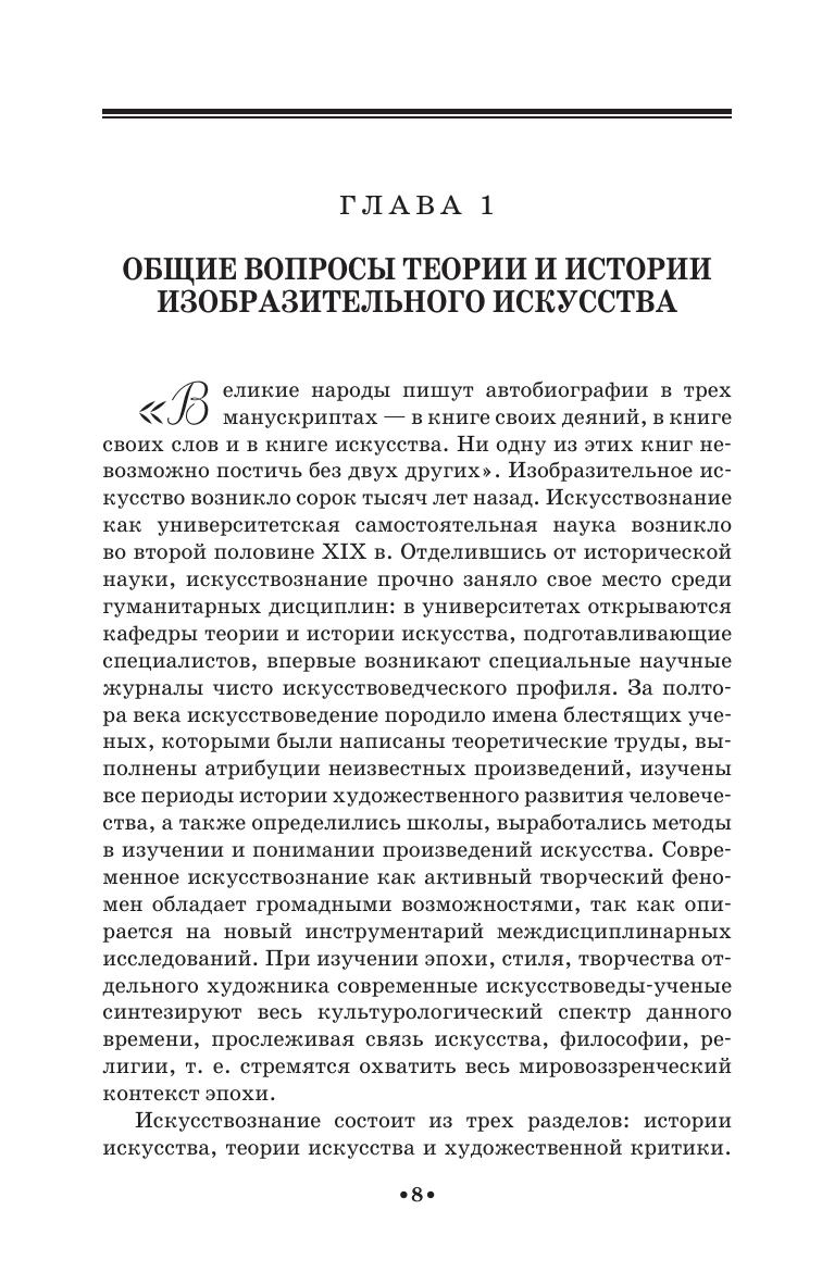 В учебном пособии под одной обложкой представлены теория и история разных искусств: изобразительного искусства, театра, кино. Искусства существуют не в замкнутом пространстве— они вписаны вопределенный социокультурный контекст и постоянно взаимодействуют друг с другом. Поэтому лишь взятые вместе, они становятся формой художественного самосознания человечества, той культурной связкой, благодаря которой осуществляется диалог эпох. В качестве основного принципа подачи материала избран примененный к художественному познанию принцип единства исторического и логического, благодаря которому развитие искусства последовательно прослеживается как хронологически, так и на примерах творчества наиболее значимых его представителей. Соответствует Федеральному государственному образовательному стандарту высшего профессионального образования третьего поколения. Для студентов бакалавриата и магистратуры гуманитарных специальностей и направлений, а также для всех, интересующихся вопросами теории и истории искусства.