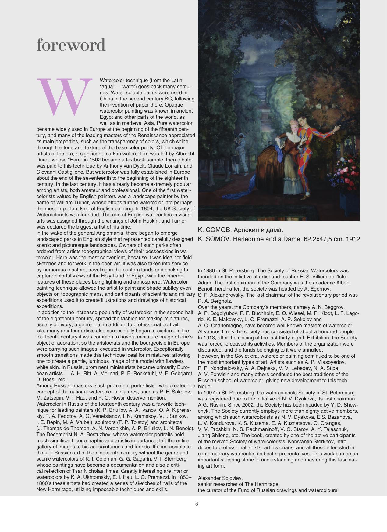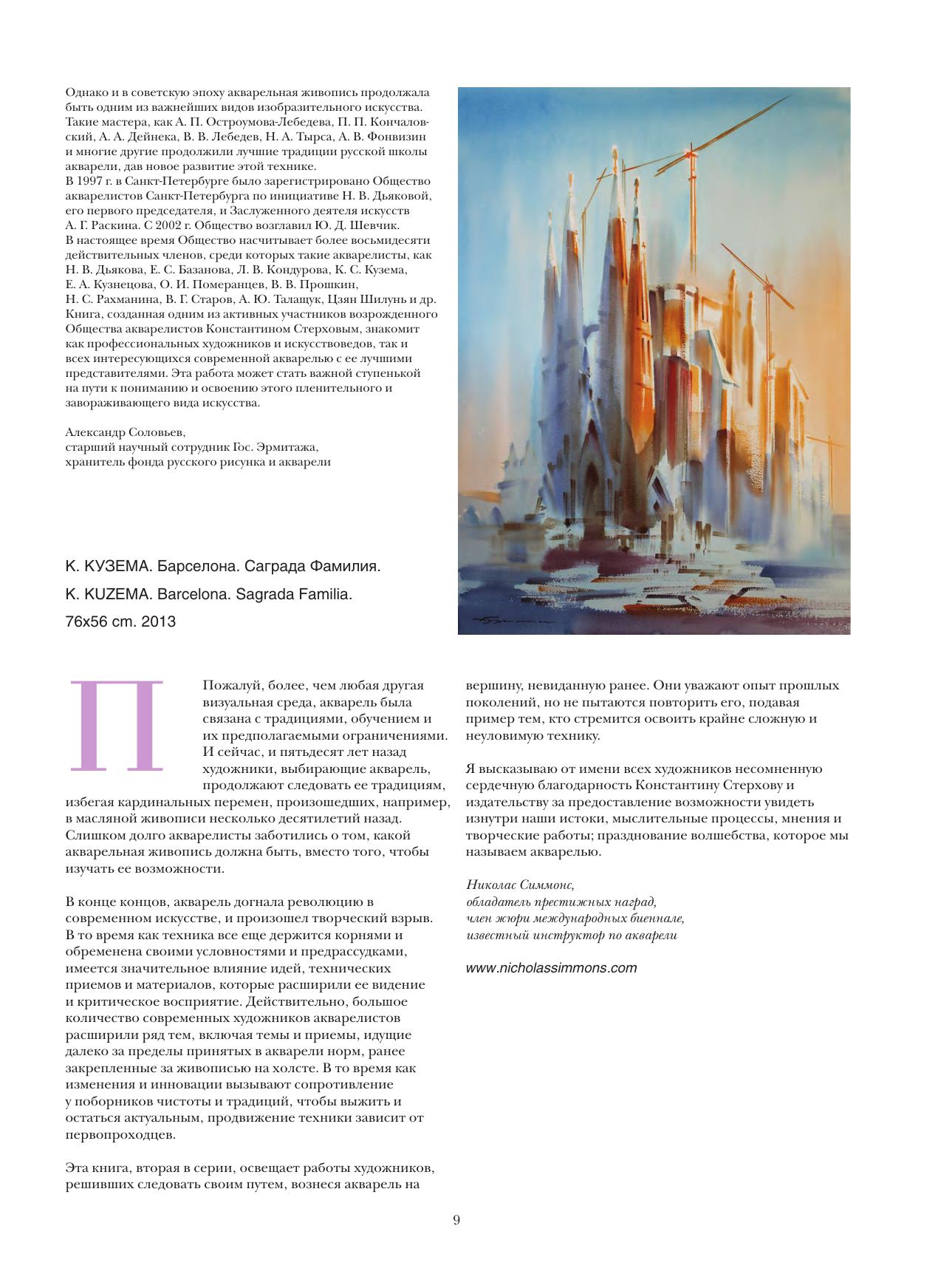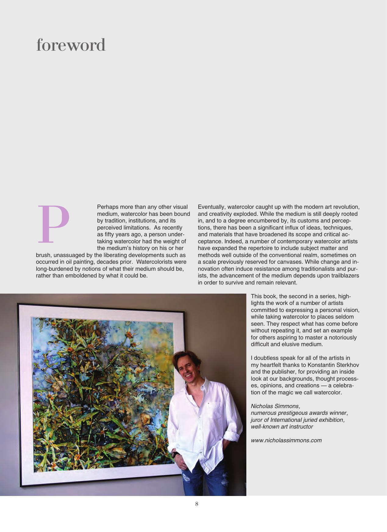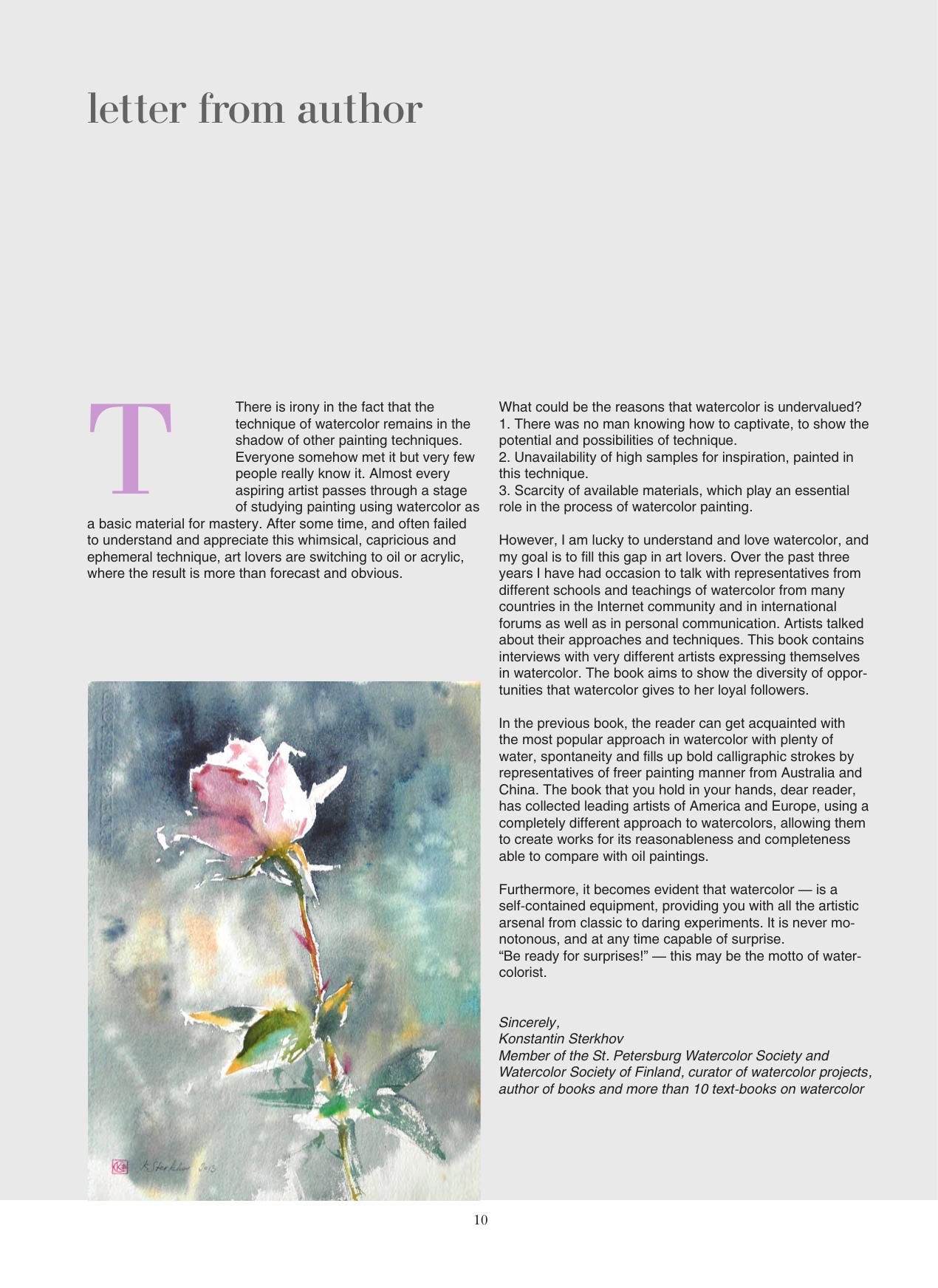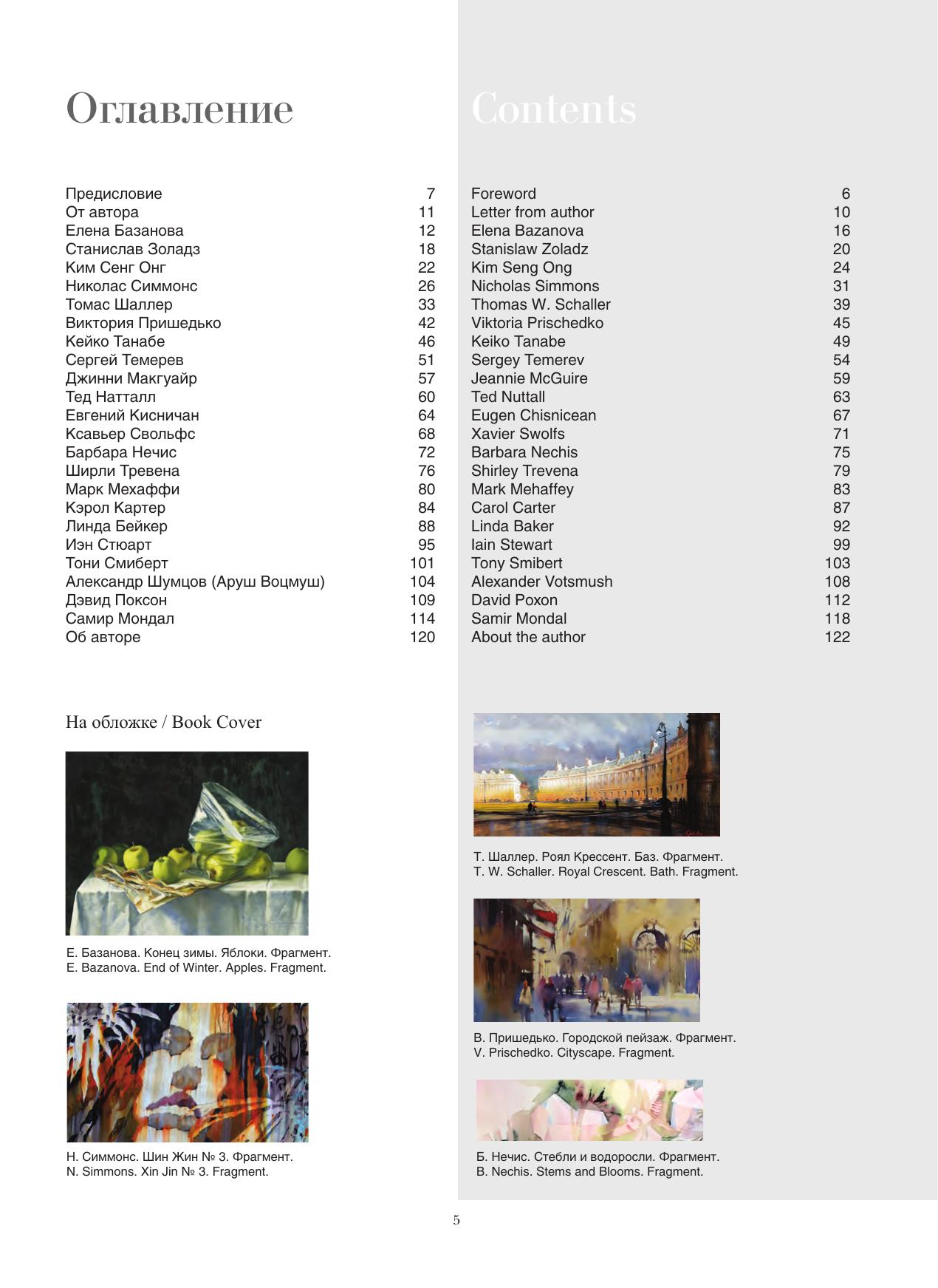 Все художники и их работы, которые включены в книгу, интересны и значимы в мире современной акварели. Некоторые широко представлены в интернете, некоторые — в гораздо меньшей степени. Тем не менее настоящее издание — это личное общение и искренние ответы художников о том, что их интересует больше всего, — об АКВАРЕЛИ. Книга будет интересна и профессиональным художникам, и любителям данной техники живописи. All the artists and their works which are included in the book are interesting and important in the world of contemporary watercolor. Some are well represented on the Internet, some to a much lesser extent. However, these are personal conversations, with the sincere responses of artists about their major interest — watercolors. The book will be interesting for professional artists and amateurs who work in that technique.
