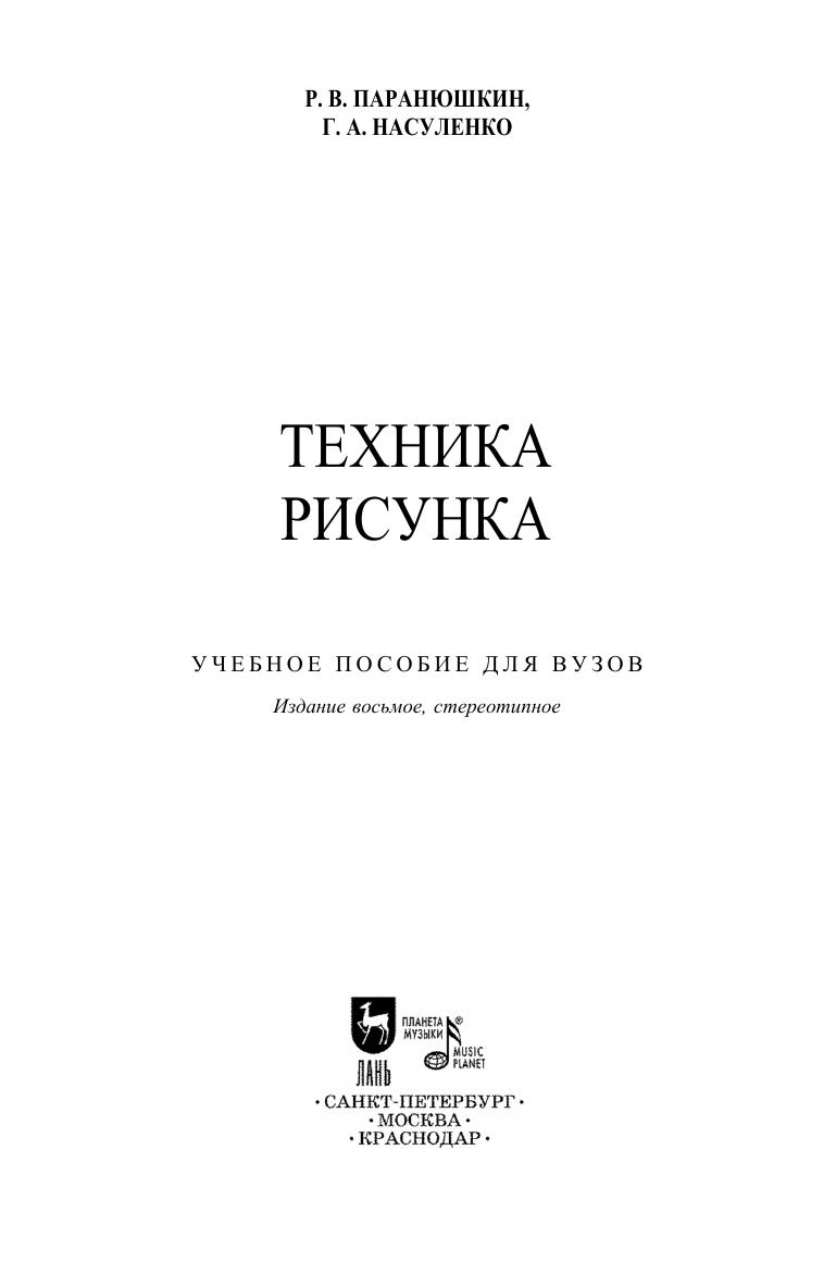 Учебное пособие по технике рисунка для студентов художественных специальностей и любителей, изучающих рисунок различными материалами. Рассматриваются инструменты и материалы для рисунка, различные приёмы и виды техники, даются практические советы и отмечаются методические особенности работы. Авторы – члены Союза художников России, ведущие преподаватели Волгоградского института художественного образования – профессор Р. В. Паранюшкин и доцент Г. А. Насуленко.
