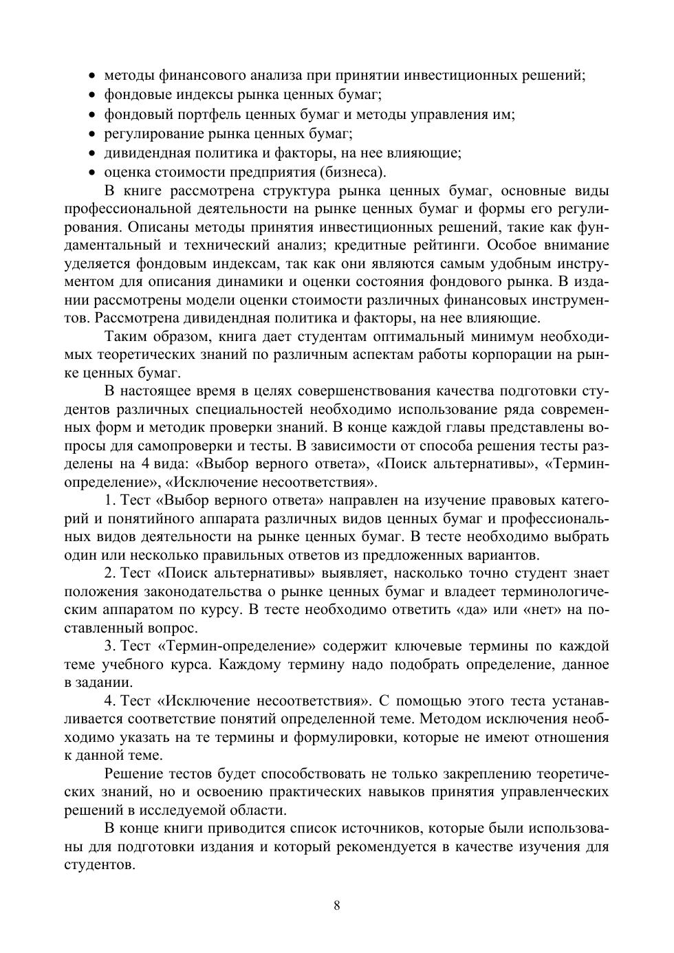 Рынок ценных бумаг является неотъемлемой частью финансового рынка. Ценные бумаги, как и их рынок, постоянно трансформируются. Поэтому рынок ценных бумаг, сами ценные бумаги, их различная предназначенность требуют постоянного изучения и анализа, чем и занимается дисциплина, которой посвящено данное пособие. В нем дается систематизированный понятийно-терминологический аппарат, характеризующий основные аспекты функционирования рынка ценных бумаг. Раскрыты сущность и содержание ценных бумаг, дана их классификация, изложены основные формы регулирования рынка ценных бумаг, рассмотрены операции корпораций на рынке ценных бумаг, в том числе эмиссия ценных бумаг. В дополнение к теоретической части в учебном пособии предложен ряд современных форм и методик проверки знаний студентов, осваивающих данную дисциплину. Книга предназначена для студентов экономических вузов всех форм обучения по направлениям подготовки «Экономика», «Менеджмент», «Финансы и кредит», «Бизнес-информатика», «Экономическая безопасность» и др. Также книга будет полезна всем тем, кто проявляет профессиональный интерес к финансовому рынку.