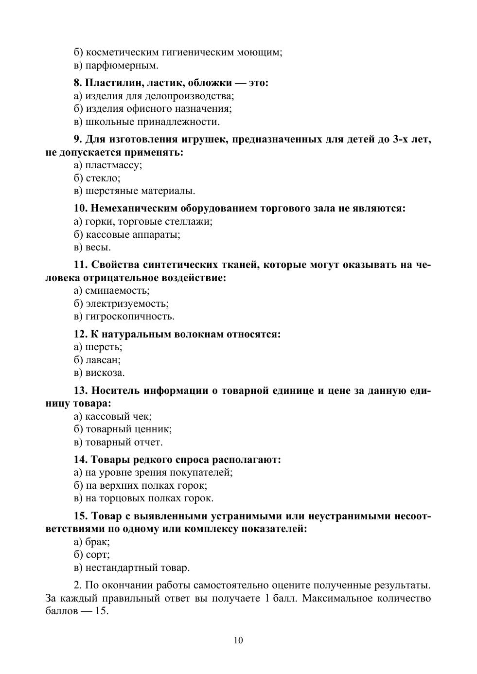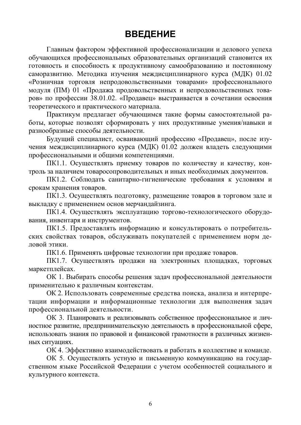 Практикум по профессии «Продавец» соответствует современным требованиям Федерального государственного образовательного стандарта среднего профессионального образования и профессиональным квалификационным требованиям. В нем представлены практические занятия, охватывающие все разделы междисциплинарного курса «Розничная торговля непродовольственными товарами». В каждом практическом занятии представлены цели, определены необходимые материалы и оборудование и сформулированы требования, необходимые для успешного выполнения каждого задания. Книга может использоваться для проведения аудиторных семинарских занятий и практикумов, а также внеаудиторных самостоятельных работ. Учебное пособие предназначено для студентов профессиональных образовательных организаций торгового профиля. Может использоваться в дополнительном профессиональном образовании по специальности «Продавец непродовольственных товаров» для повышения квалификации и переподготовке специалистов данного профиля, а также для преподавателей и мастеров производственного обучения по данному профилю.