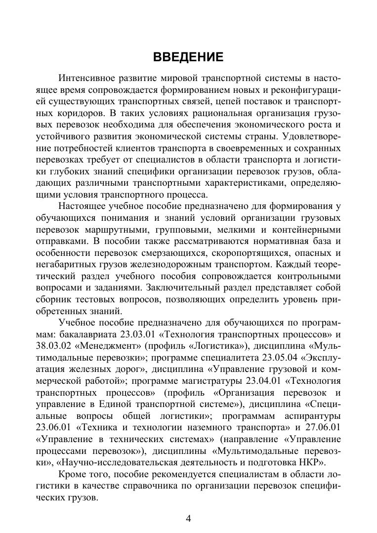 Учебное пособие предназначено для формирования знаний по организации грузовых перевозок маршрутными, групповыми, мелкими и контейнерными отправками. В пособии также рассматриваются особенности перевозок смерзающихся, скоропортящихся, опасных и негабаритных грузов железнодорожным транспортом. Предназначено для обучающихся по программам «Технология транспортных процессов», «Менеджмент» (профиль «Логистика»), «Эксплуатация железных дорог», «Технология транспортных процессов» (профиль «Организация перевозок и управление в Единой транспортной системе»), а также «Техника и технологии наземного транспорта» (направленность «Транспортные и транспортно-технологические системы страны, её регионов и городов, организация производства на транспорте») и «Управление в технических системах» (направленность «Управление процессами перевозок»).