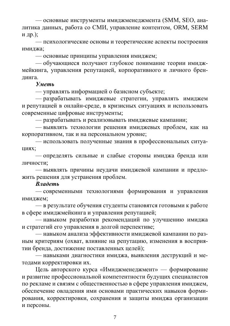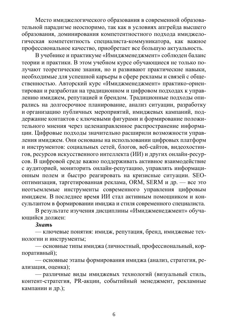 Данный учебник представляет собой комплексное исследование имиджменеджмента как управленческой стратегии, охватывая исторические, теоретические и практические аспекты. В учебнике рассматриваются вопросы формирования имиджа, свойственные разным этапам развития общества, анализируются необходимые компетенции современного специалиста и факторы развития его имиджевой культуры. Учебник детально изучает структурные компоненты и технологии управления персональным имиджем. Но особое внимание уделено корпоративному управлению имиджем и брендом, включая стратегии бренд-билдинга, нейминг, а также аспекты антиимиджа и антибрендинга. Целью учебника является формирование у обучающихся целостного представления об имиджменеджменте и развитие навыков эффективного управления имиджевым капиталом базисного субъекта PR. Учебник предназначен студентам вузов, обучающимся по направлению подготовки «Реклама и связи с общественностью», а также по смежным специальностям, связанным с коммуникацией, имиджмейкингом, маркетингом и менеджментом. Кроме того, будет полезен специалистам-практикам, непосредственно занимающимся имиджменеджментом.