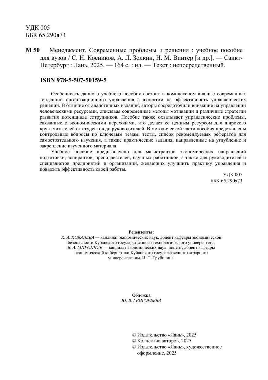 Особенность данного учебного пособия состоит в комплексном анализе современных тенденций организационного управления с акцентом на эффективность управленческих решений. В отличие от аналогичных изданий, авторы сосредоточили внимание на управлении человеческими ресурсами, описывая современные методы мотивации и различные стратегии развития потенциала сотрудников. Пособие также охватывает управленческие проблемы, связанные с экономическими переходами, что делает ее ценным ресурсом для широкого круга читателей от студентов до руководителей. В методической части пособия представлены контрольные вопросы по ключевым темам, тесты, список рекомендуемых рефератов для самостоятельного изучения, а также практические задания, направленные на углубление и закрепление изученного материала. Учебное пособие предназначено для магистрантов экономических направлений подготовки, аспирантов, преподавателей, научных работников, а также для руководителей и специалистов предприятий и организаций, желающих улучшить практику управления и повысить эффективность своей работы.