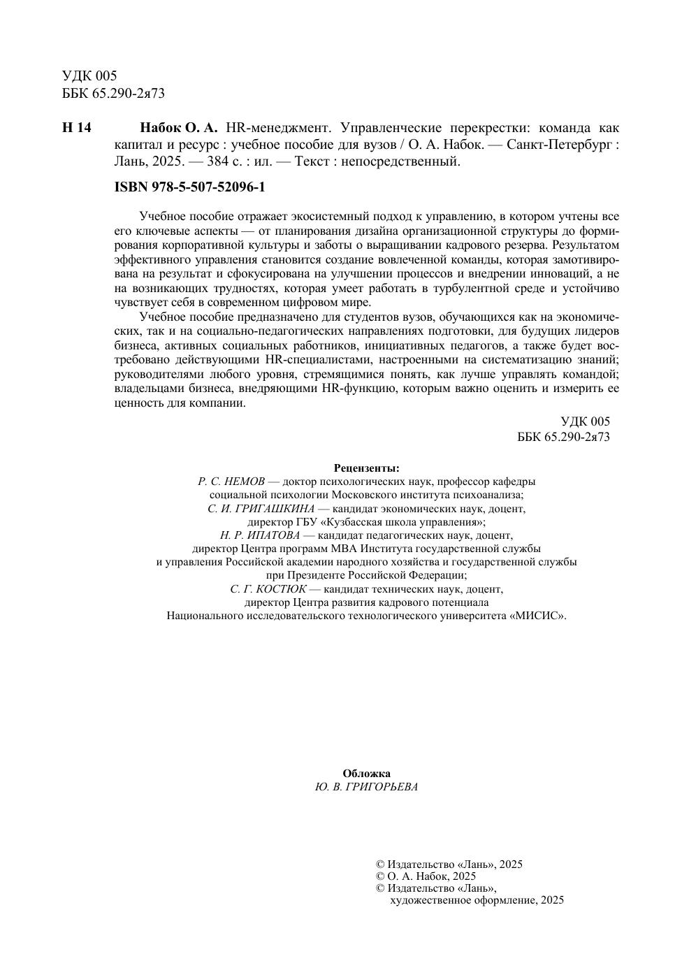 Учебное пособие отражает экосистемный подход к управлению, в котором учтены все его ключевые аспекты — от планирования дизайна организационной структуры до формирования корпоративной культуры и заботы о выращивании кадрового резерва. Результатом эффективного управления становится создание вовлеченной команды, которая замотивирована на результат и сфокусирована на улучшении процессов и внедрении инноваций, а не на возникающих трудностях, которая умеет работать в турбулентной среде и устойчиво чувствует себя в современном цифровом мире. Учебное пособие предназначено для студентов вузов, обучающихся как на экономических, так и на социально-педагогических направлениях подготовки, для будущих лидеров бизнеса, активных социальных работников, инициативных педагогов, а также будет востребовано действующими HR-специалистами, настроенными на систематизацию знаний, руководителями любого уровня, стремящимися понять, как лучше управлять командой, владельцами бизнеса, внедряющими HR-функцию, которым важно оценить и измерить ее ценность для компании.