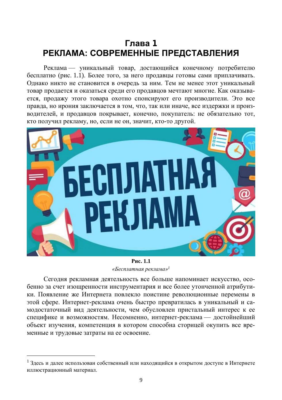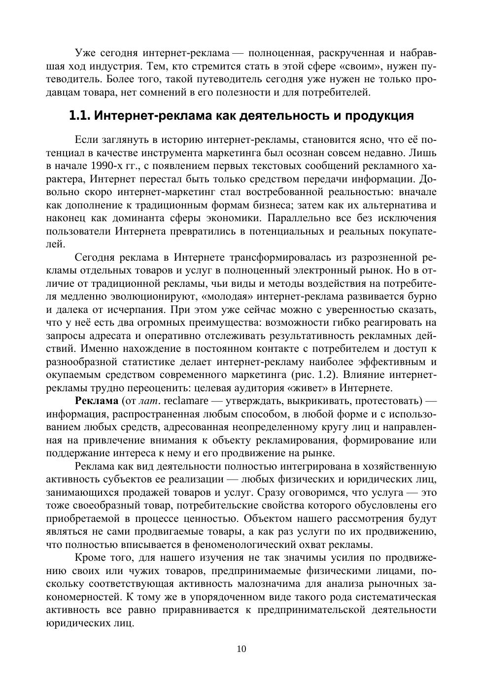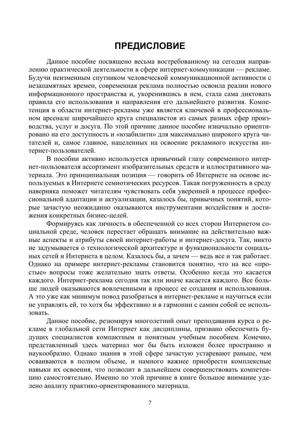 Данное пособие посвящено весьма востребованному на сегодня направлению практической деятельности в сфере интернет-коммуникации — рекламе. Интернет-реклама так или иначе касается каждого. Данная работа, резюмируя многолетний опыт преподавания курса «Реклама в интернете», призвана обеспечить будущих специалистов компактным и понятным учебным пособием. В ней простым и максимально адаптированным к широкой аудитории языком освещаются важнейшие стороны рекламной деятельности в Интернете. При этом акцент сделан на освещении современных реалий интернет-рекламы и перспективах ее совершенствования и развития. Соответствует современным требованиям Федерального государственного образовательного стандарта среднего профессионального образования и профессиональным квалификационным требованиям. Учебное пособие предназначено для студентов профессиональных образовательных организаций технического и гуманитарного профилей, изучающих учебные дисциплины, связанные с проблематикой информационного обслуживания бизнеса и веб-дизайна.