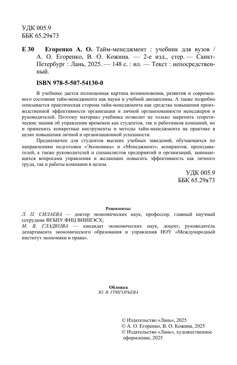 В учебнике дается полноценная картина возникновения, развития и современного состояния тайм-менеджмента как науки и учебной дисциплины. А также подробно описывается практическая сторона тайм-менеджмента как средства повышения производственной эффективности организации и личной организованности менеджеров и руководителей. Поэтому материал учебника позволит не только закрепить теоретические знания об управлении временем как студентов, так и работников компаний, но и применить конкретные инструменты и методы тайм-менеджмента на практике в целях повышения личной и организационной успешности. Предназначен для студентов высших учебных заведений, обучающихся по направлениям подготовки «Экономика» и «Менеджмент», аспирантов, преподавателей, а также руководителей и специалистов предприятий и организаций, занимающихся вопросами управления и желающих повысить эффективность как личного труда, так и работы компании в целом.