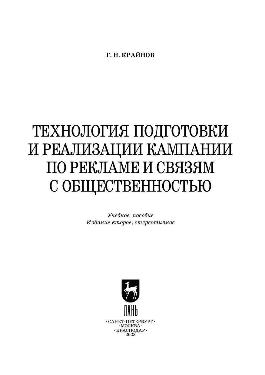 В учебном пособии дано комплексное представление о технологии подготовки и реализации кампании по рекламе и PR. Изложены теоретико-методологические, информационные, организационные и коммуникационные основы подготовки, планирования и реализации кампаний, способы выстраивания тактики и стратегии, методы и средства реализации кампании. Раскрываются содержание, логика, базовые элементы и алгоритмы подготовки, планирования и реализации кампании, ее организационно-управленческие аспекты и условия ее эффективности. Соответствует современным требованиям Федерального государственного образовательного стандарта среднего профессионального образования и профессиональным квалификационным требованиям. Учебное пособие предназначено для студентов колледжей по направлению «Реклама», а также для преподавателей и всех тех, кто интересуется проблемами рекламы и связей с общественностью.